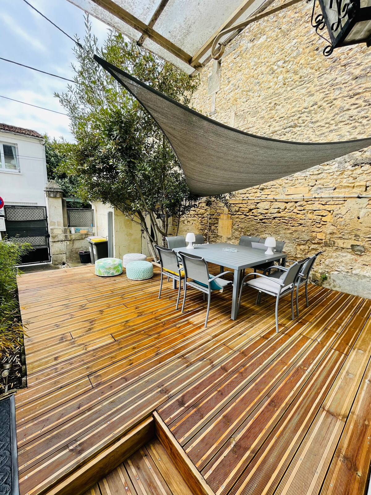 Napakagandang townhouse na nakatanaw sa riles ng tren. (Mga tren sa rehiyon lang) 10 minutong lakad mula sa istasyon ng tren at 20 minuto mula sa sentro ng lungsod (mga tindahan, Cognac house, atbp.) Ganap na na - renovate kamakailan Box na may Wi‑Fi Napakaliwanag at may malaking sala, 2 kuwarto, 1 double bed sa isa, 1 drawer bed na may 2 mattress sa isa pa (puwedeng magpatulog ng sanggol: may ibinibigay na foldable na higaan at sapin) Banyo at hiwalay na WC. Reversible air conditioning sa ground floor. Madaling paradahan sa kalye Wala sa labas.