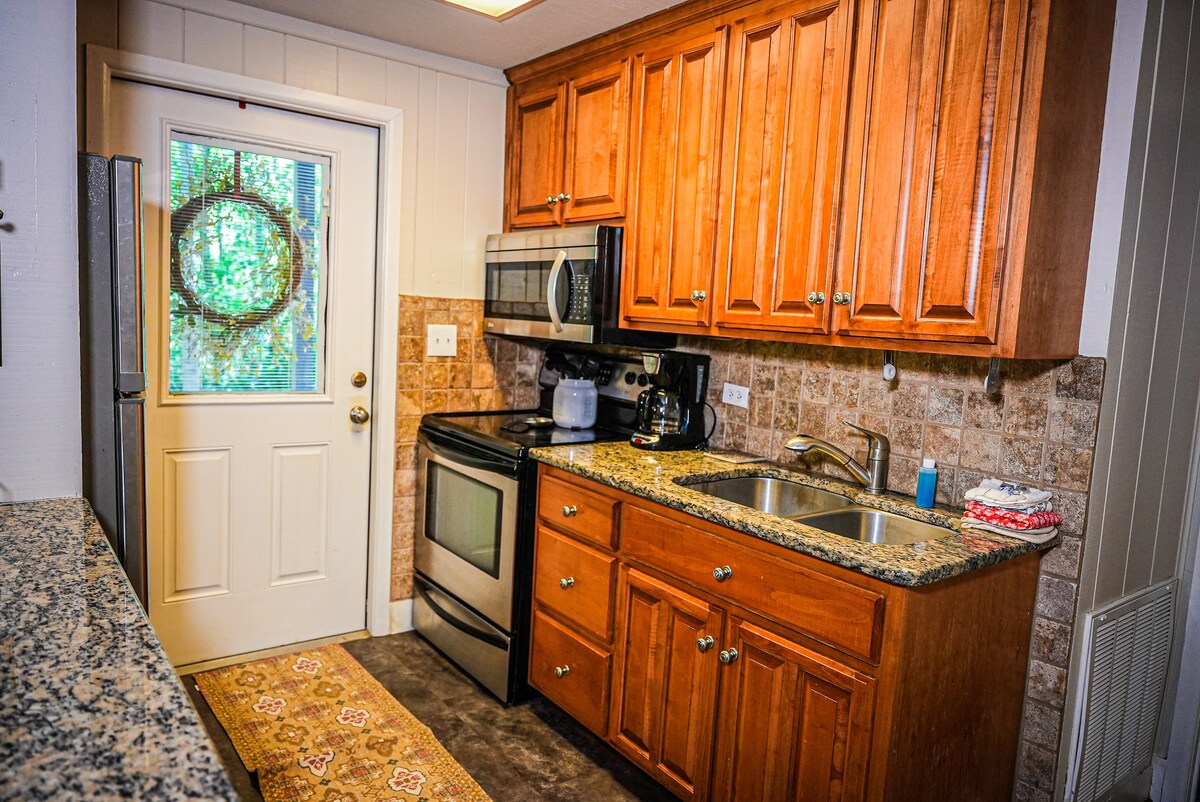 Ang Amandas Treehouse ay isang fully furnished na 1200 sq. na chalet style home na matatagpuan sa mga treetop ng Dahlonega. Matatagpuan ito sa labas lamang ng mga limitasyon ng lungsod, ngunit malapit sa lahat! Matatagpuan sa malapit (ang ilan/karamihan ay .25 - 1 milya ang layo!) ang maraming gawaan ng alak ng Dahlonega. Mainam para sa isang bakasyon para sa dalawa. Malugod na tinatanggap ang tuluyang ito sa mga gustong mag - disconnect at magkaroon lang ng magandang bakasyon kahit sandali lang. Tumakas sa tahimik na kanlungan ng kalikasan na ito! Host para sa panandaliang matutuluyan #092