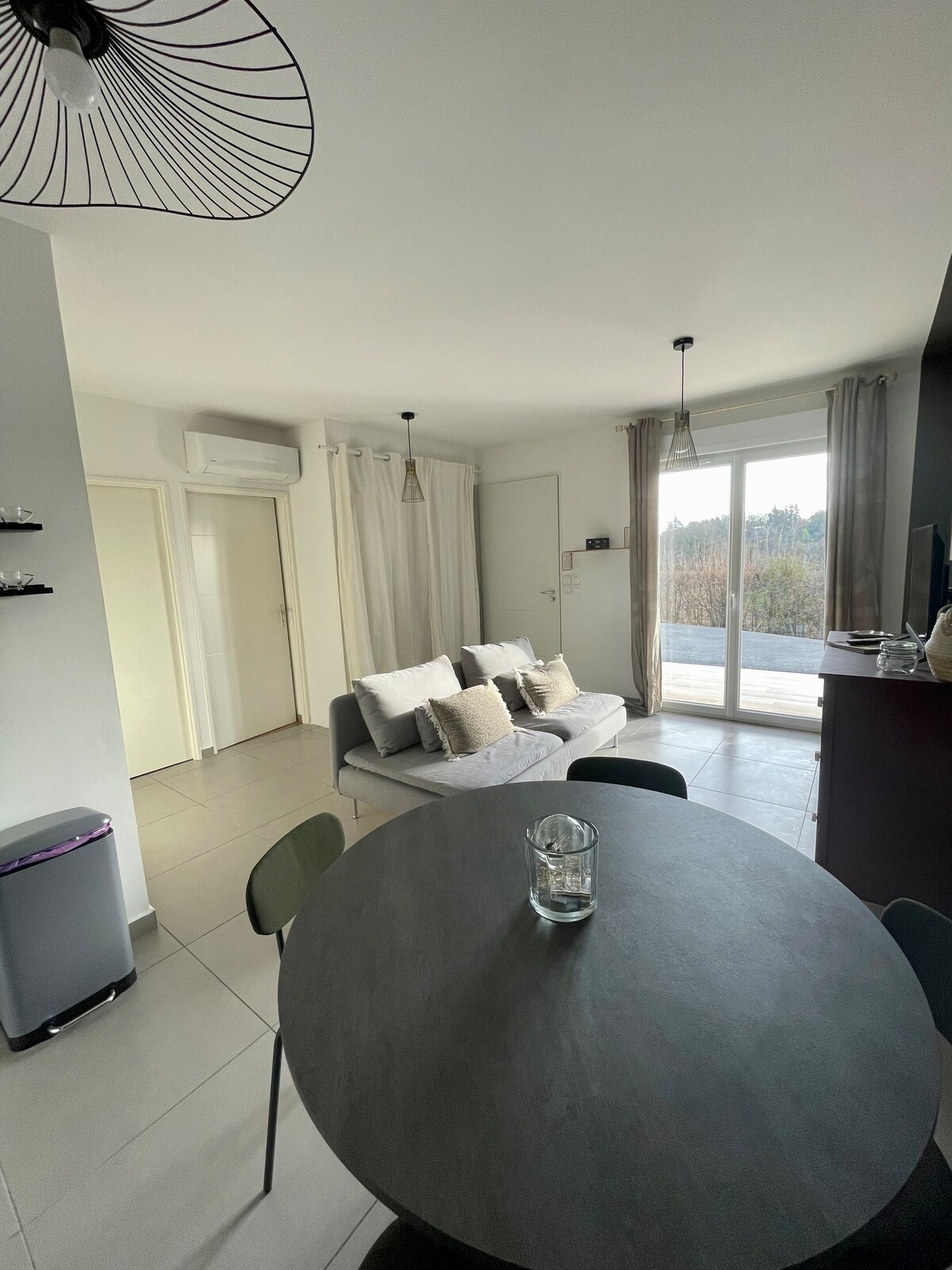 May kumpletong kagamitan na apartment na binubuo ng isang kuwarto (may banyo at 2 higaan) (at sofa kapag hiniling na may dagdag na €10 para sa linggo) at kusina at sala. Sa pamamagitan ng indibidwal na access, ang mainit na lugar na ito na napapalibutan ng halaman ay magbibigay sa iyo ng kaginhawaan at privacy. Nakareserbang paradahan na 10 metro mula sa pasukan. Ang apartment ay nasa unang palapag ng bahay ko. Hindi ako masyadong nakikialam pero available ako kung kailangan mo ako ;)