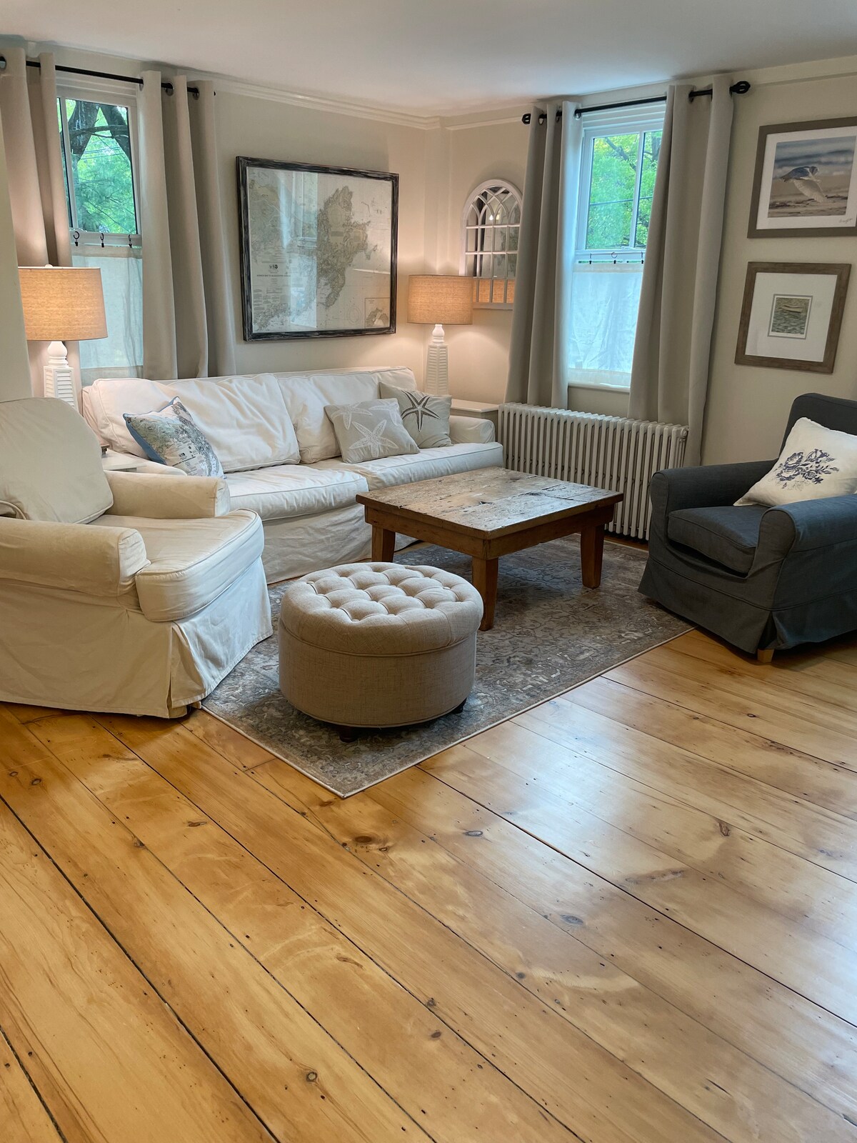 Come to Rockport this spring and stay at this renovated waterfront apartment in a historic home with onsite parking, yard and a private entrance. Our prime downtown location is steps from beaches, restaurants, coffee shops, live music, and shopping on Bearskin Neck. Features full kitchen and bathroom with new applicances and fixtures. Living room has a loveseat, swivel chair, dining table, coffee table, roku TV, games, puzzles & books. Kitchen has a fridge, stove, oven, microwave and Keurig.