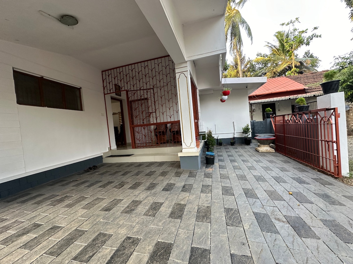 Matatagpuan sa payapang nayon ng Arampilly ang simple pero modernong tuluyang ito na may 3 kuwarto at 3 banyo. Makinig sa mga awit ng ibon at mga dahon, o maglakbay sa mga landmark ng Thrissur, templo (Guruvayoor Temple 15 km), at kainan. Narito ka man para sa isang tahimik na bakasyon o para maranasan ang kagandahan ng Kerala nang mas mabagal, ang tahimik na tuluyang ito ay nag - aalok ng pinakamahusay sa parehong mundo - modernong kaginhawaan sa isang tahimik na lugar sa kanayunan.