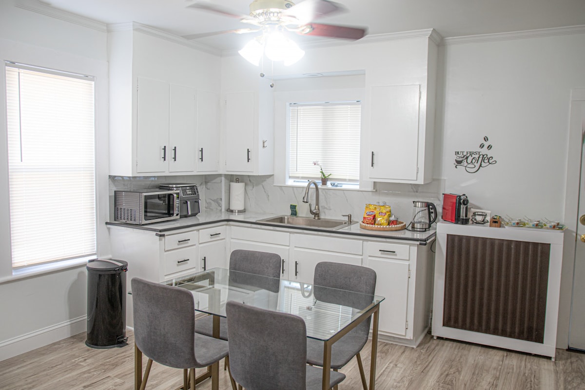 1,100 talampakang kuwadrado, ganap na naayos, 1 silid - tulugan na may walk - in closet. Malaking banyo na may dalawang lababo at walk - in shower. Buksan ang konseptong sala, kainan at kusina na may may vault na kisame. Hardwood na sahig sa kabuuan. Central air. Konektado ang apartment sa isang pangunahing bahay pero walang panloob na access sa pagitan ng bahay at apartment. (Walang mga pinto ng pagkonekta sa loob) Mayroon itong sariling pribadong driveway at side yard. Wala na sa apartment ang tangke ng reef pagkalipas ng Mayo 20.