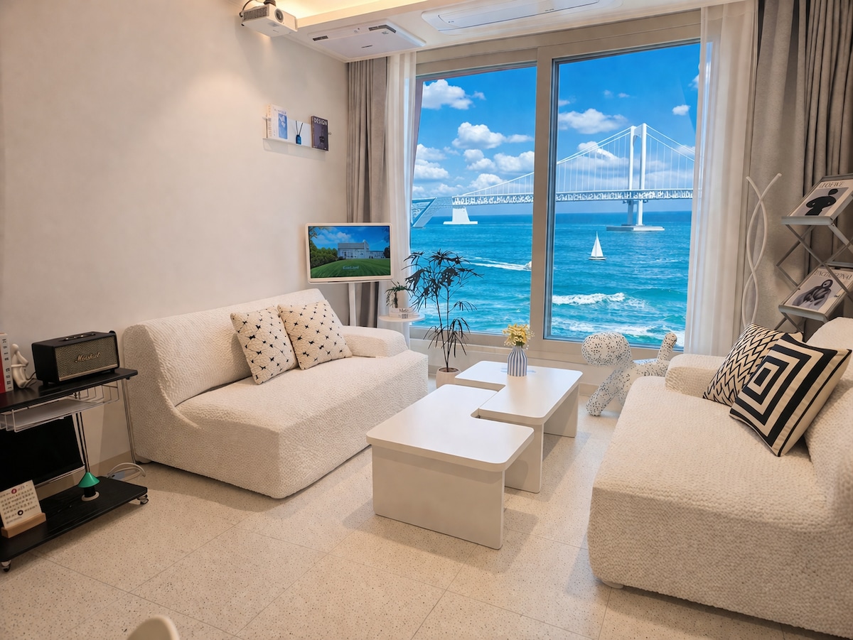 🐳 Gwangalli Gwangan Bridge Sea View New Building 20 pyeong 🐳 Sa sala at kuwarto, nasa harap mo ang dagat at ang Tulay ng Gwangan. 👀🩵 Gamseong House kung saan mararamdaman mo ang buong tanawin ng Tulay ng Gwangan mula sa ▪silid‑tulugan at sala 2 kuwarto, 1 sala Magrelaks sa dalawang queen bed at isang super single bed Ito ay isang maluwang na matutuluyan na angkop para sa buong pamilya ng 20 pyeongs. Libreng paradahan sa 🚙 B1 ~ 3F Paradahan para sa maraming 🚙 sasakyan May paradahan 🚙 sa advance May paradahan hanggang 12:00 PM pagkatapos 🚙 umalis sa kuwarto Hindi kailangan ng rehistro ng sasakyan 🚙 Sabihin sa amin nang mas maaga kung gusto mong i‑store ang bagahe mo bago 👜 mag‑check in. Nakatira sa gusali rin ang ▪️host kaya mabilis siyang makakatugon sa mga kahilingan at emergency. Kung kailangan mo ako, matutulungan kita kaagad.