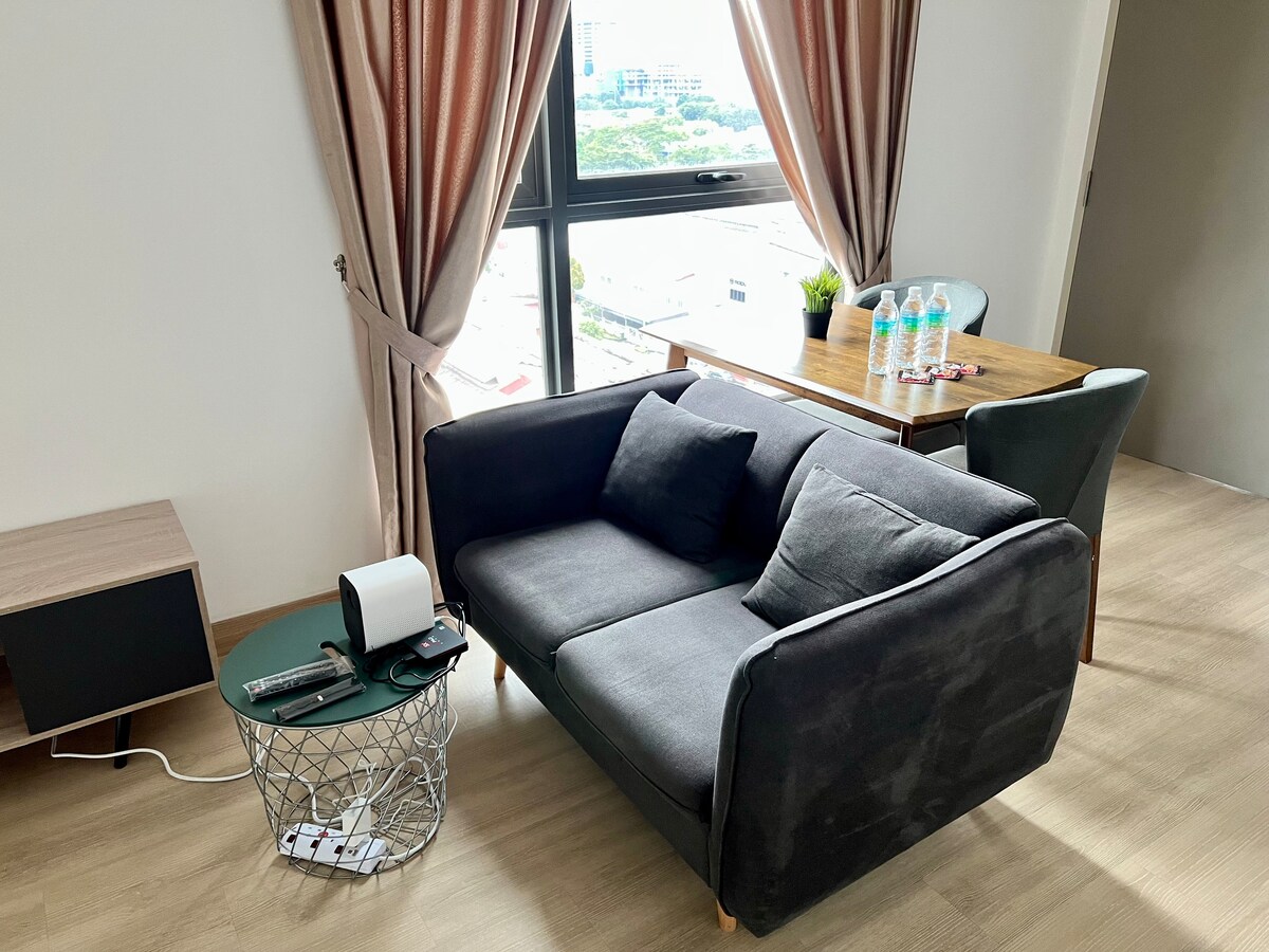 - Higit pang mga espesyal na ay may Balkonahe, oras ng gabi mahangin, araw - araw mamahinga寬敞陽台,日間舒暢 (夜涼風冷, ,) - Ang King side Bed set at sofa bed ay nagbibigay - daan sa mas maraming tao na manatili(King size雙人床和沙發床更舒適). Ilang minuto lang ang layo ng Downstair papunta sa EkoCheras Mall , sinehan , shopping mall (Maglakad sa ibaba papunta sa EkoCheras Mall na may tindahan ng teatro) - Around 200meter sa pamamagitan ng tulay lakad sa MRT mutiara Cheras (200m upang maglakad sa Lid Aquarium na may MRT light rail, huwag mag - alala tungkol sa ulan at sun drying, lubos na maginhawang pag - access sa transportasyon) - wala pang 10mins ay maaari ring maglakad papunta sa Leisure Mall, Mahusay! (Maaari ka ring maglakad papunta sa kalapit na Leisure Mall nang mga 10 minuto, mahusay!)