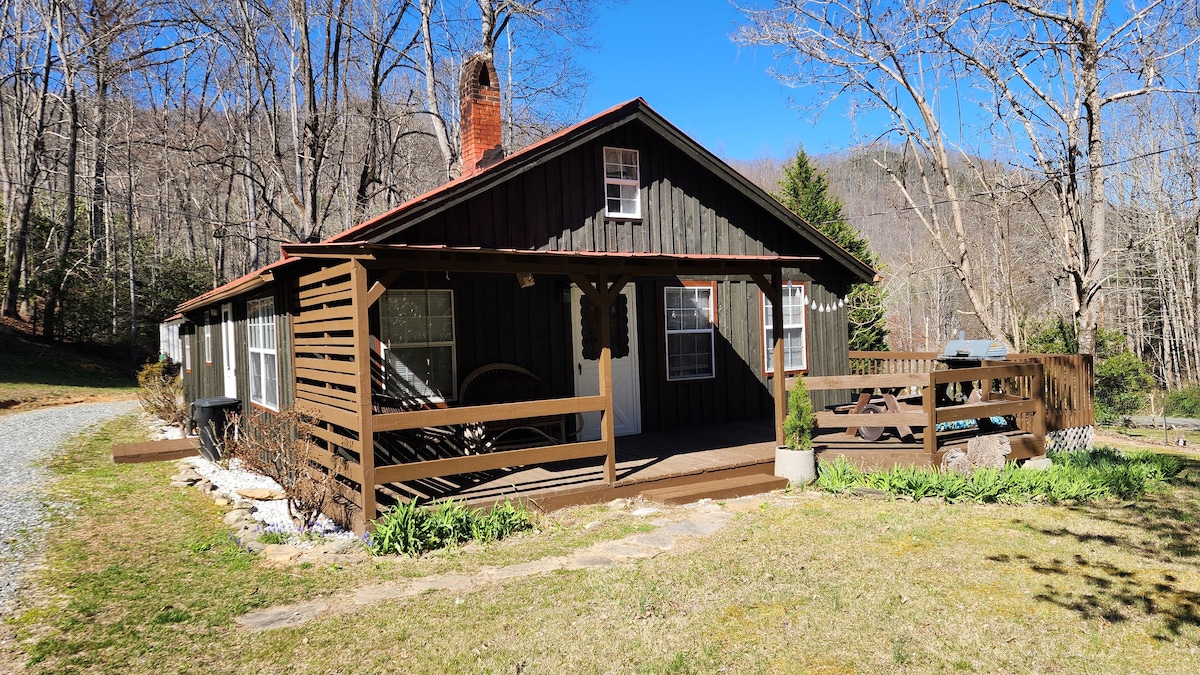 Matatagpuan ang rustic na 2 silid - tulugan na 1 1/2 bath cabin na ito sa mapayapang kakahuyan para sa perpektong bakasyunan sa bundok. Ang cabin ay ang perpektong lugar para sa mga pamilya, nagsasama kami ng playroom sa itaas na may game table, mga libro, at mga laruan. Nagbibigay din kami ng panlabas na ihawan, malaking beranda, at maraming upuan sa labas na magbibigay ng pinakamahusay na paraan para masiyahan sa kalikasan. Medyo malapit ang cabin sa dalawang munting bahay pero nag - aalok pa rin ng privacy.