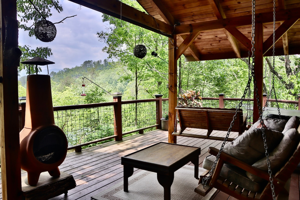 Ang aming tuluyan ay isang bagong komportableng log cabin na may mga modernong touch at dekorasyon. Kumpleto sa mga napakagandang tanawin ng Smoky Mountains, malawak na covered porch, hot tub, outdoor fire pit, indoor gas fireplace, at lahat ng amenidad ng tuluyan. Liblib sa 7 hindi pa nagagalaw na ektarya sa dulo ng magandang lambak para sa privacy kung saan hindi mo makikita ang alinman sa aming mga kapitbahay. Malapit din kami sa pagkilos; 15 minutong biyahe lamang mula sa 2 napakarilag na bayan sa bundok, Smoky Mountain National Park, at Cherokee Reservation/Casino.