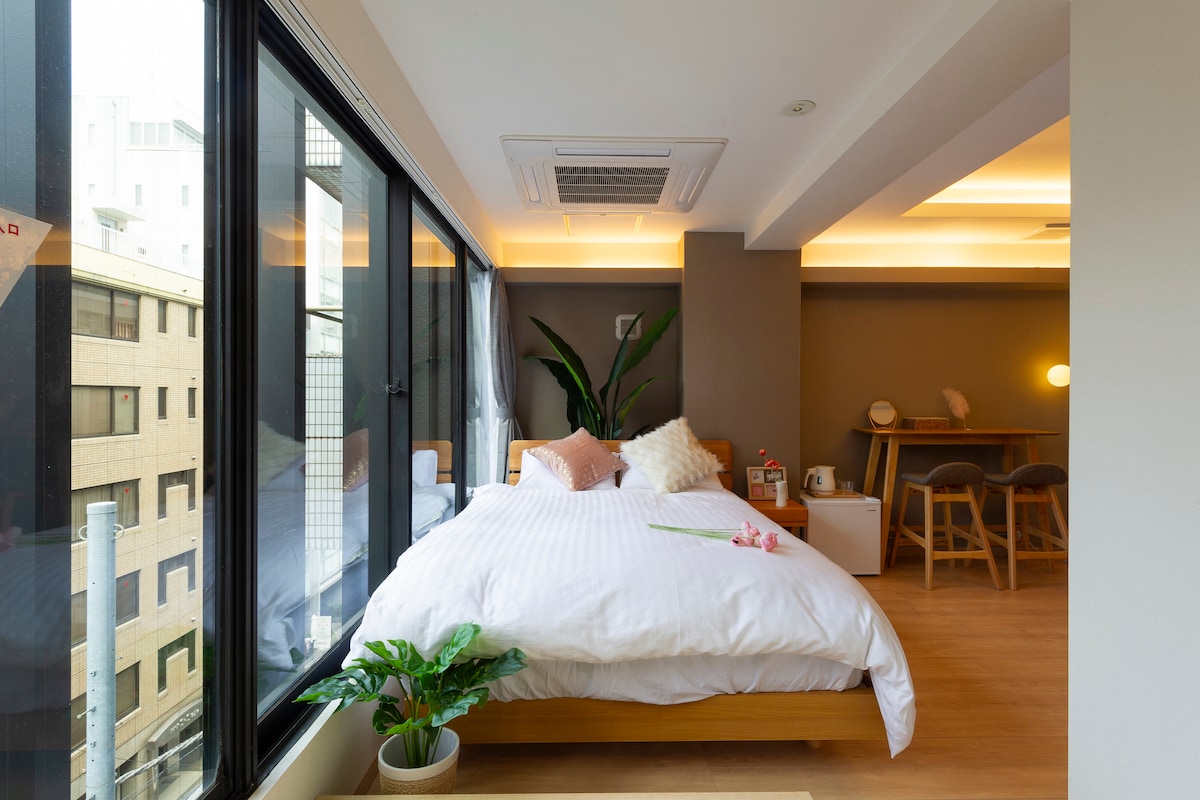 Maglakad papunta sa JR | 21㎡ Double Room w/ Bathtub & Kitchen
