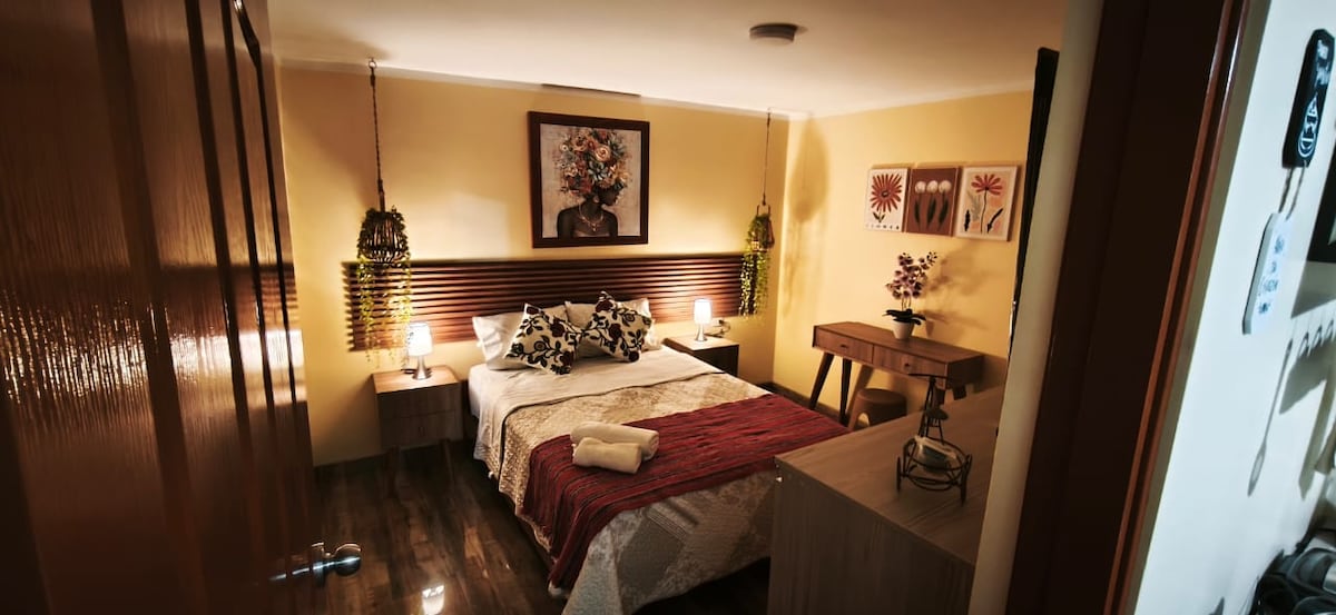 Bienvenid@ a nuestro apartamento en Chiclayo – La Victoria. Estamos ubicados en una de las zonas más bonitas y seguras de Chiclayo. A 5min del aeropuerto, del Real Plaza y del centro de la ciudad, a 2 cuadras del Jockey Club y a pocos pasos del Smart fit y los mejores restaurantes. Contamos en la habitación con una cama Drimer QUEEN. Tendrás acceso a Wi-Fi, en la sala contamos un Smart TV y Netflix. La cocina equipada y vajilla completa. Estoy para ayudarte en lo que necesites. Te esperamos!