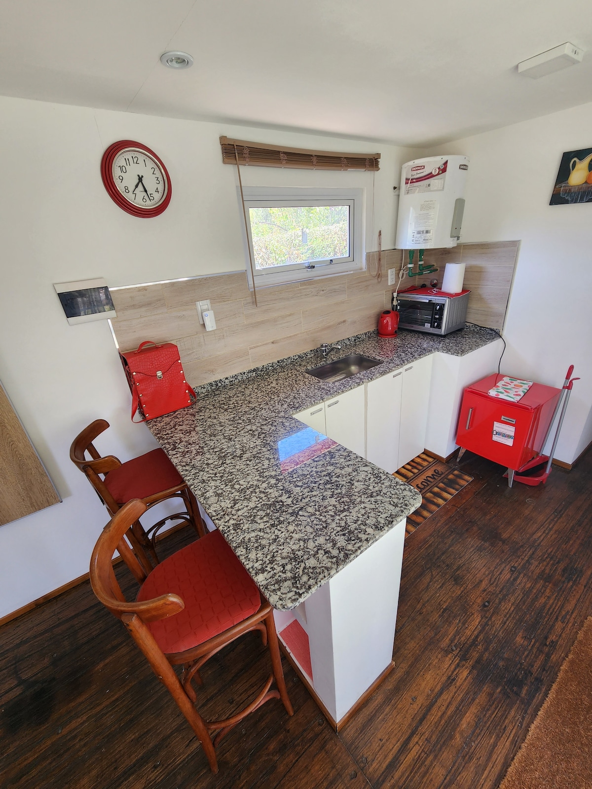 Disfrutá de una experiencia única en nuestra Casa Conteiner, un espacio moderno, cómodo y totalmente equipado, ideal para descansar y desconectar. • Espacio cómodo y bien equipado • Cocina completa • Ambiente tranquilo y privado • Ideal para hasta 3 personas 🐶 Pet friendly ¡Sabemos que tus mascotas son parte de la familia! Por eso, aceptamos animales 🐾 ➡️ Se admite 1 mascota sin cargo ➡️ A partir de la segunda mascota se cobra un adicional, que se coordina previamente con los dueños
