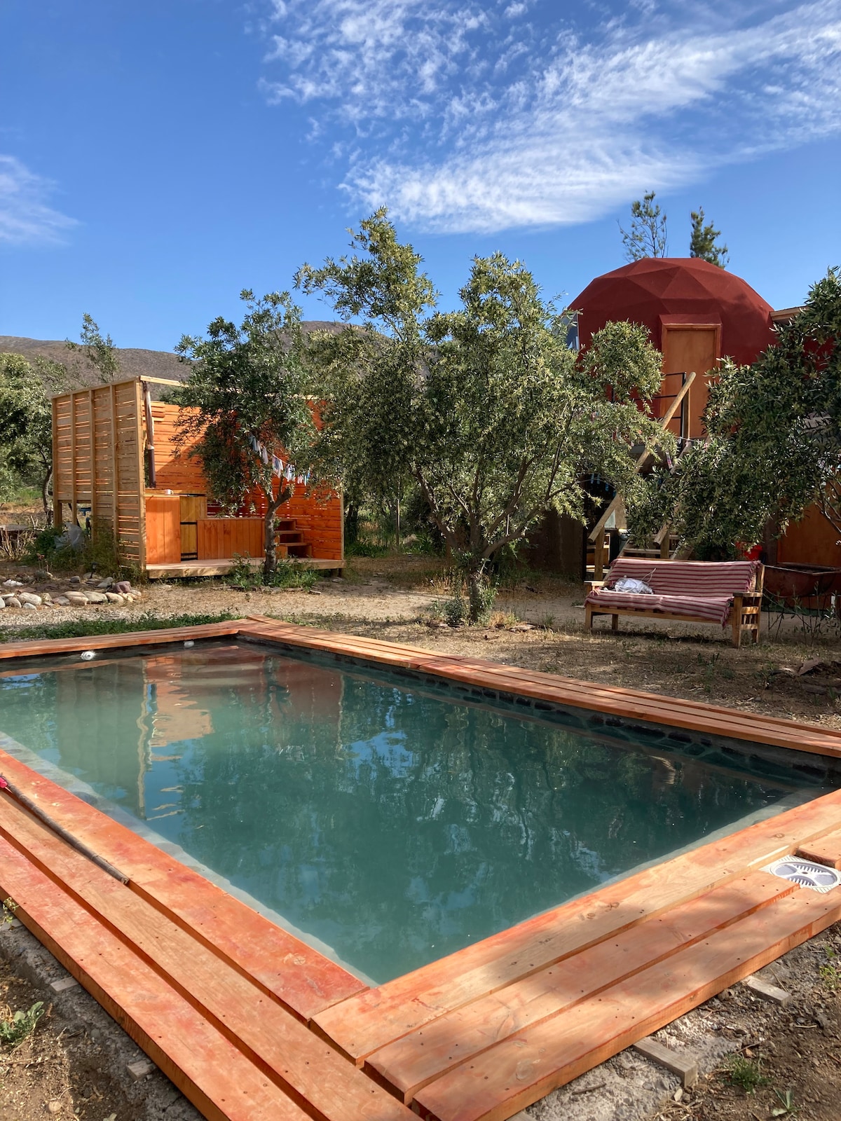 Dome na may banyong en - suite May double bed ito. Sa ibaba ay may common space kung saan may kusina at dining room. Mayroon ding swimming pool. May bathtub pero hiwalay itong binabayaran. Maaari ka ring magkaroon ng paglilibot sa isang ubasan kung saan ginagawa ang alak.