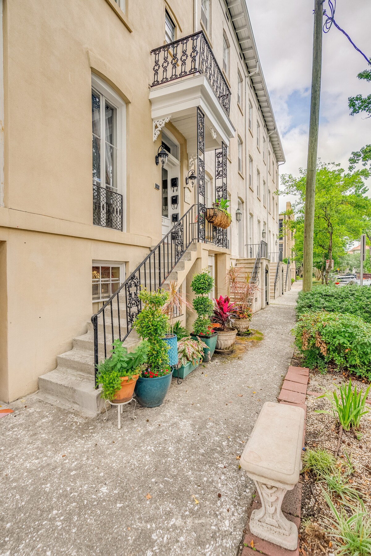 Tuklasin ang Savannah na parang lokal sa gitna ng makasaysayang distrito sa isa sa 22 iconic na plaza. Madaling maglakad papunta sa pinakamagagandang restawran sa lungsod at lahat ng atraksyon sa downtown Savannah, o magpahinga sa may takip na balkonahe. Kamakailang inayos, masiyahan sa kumpletong kusina at malaking banyong marmol na may freestanding tub. May mga sabong Aesop, linen ng Egyptian cotton mula sa Matouk, linen ng Italian bath mula sa Frette, at lahat ng kailangan mo para sa nakakarelaks na pamamalagi.