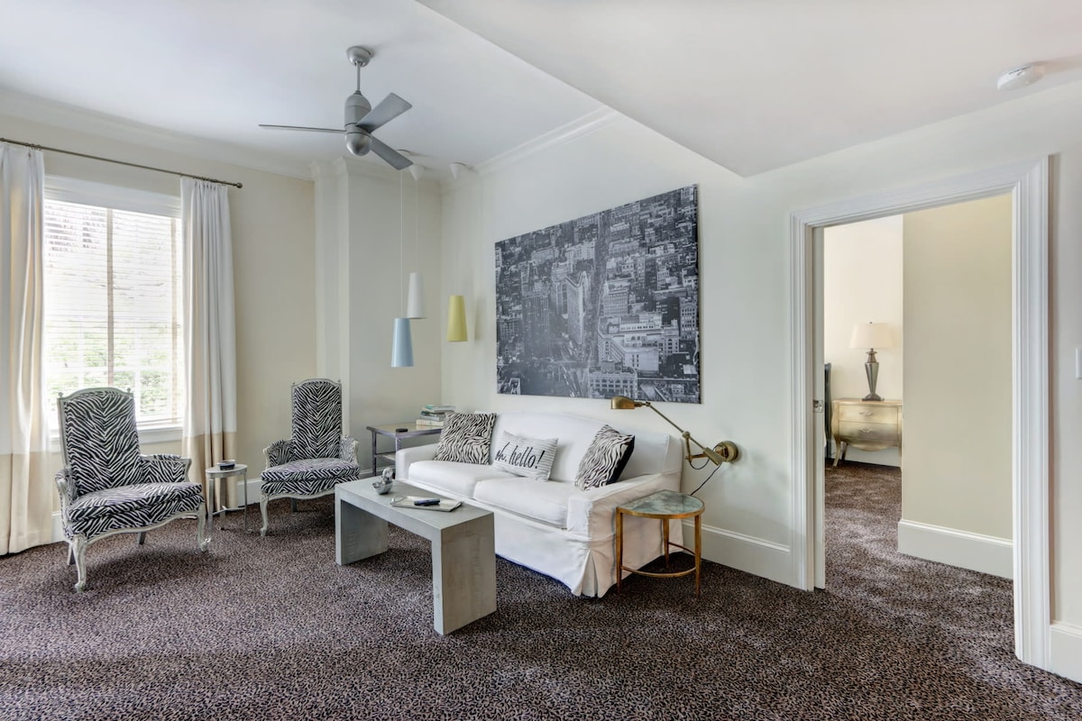 Maligayang pagdating sa The Zebra Lounge. Pinagsasama ng ganap na modernong condo na ito sa itaas ng lumang YMCA ang safari flair na may mga modernong kaginhawaan, na nag - aalok ng natatanging pamamalagi sa gitna ng Savannah. Nagtatampok ng dalawang silid - tulugan, dalawang banyo, at pribadong balkonahe, ang maluwang na suite na ito ay nagbibigay ng walang kapantay na access sa kainan, kasaysayan, atraksyon, at marami pang iba. Tangkilikin ang perpektong halo ng estilo at kaginhawaan sa Hostess City! SVR -03026