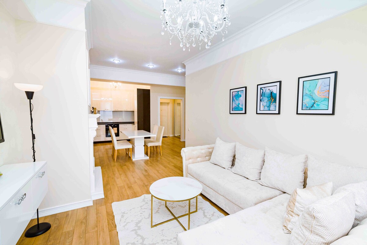 Magandang Designer Apartment na may Natatanging Tanawin. Inaanyayahan ka naming masiyahan sa iyong pamamalagi sa aming 70m2 designer apartment, na matatagpuan sa ika -15 palapag. Nag - aalok ang mga bintana ng mga nakamamanghang tanawin ng buong lungsod, na magpapasaya sa iyo araw - araw. Matatagpuan ang apartment sa prestihiyosong lugar ng Rose Valley Park, sa baybayin mismo ng lawa at parke. Ang apartment ay pinalamutian sa isang naka - istilong at komportableng disenyo. Nag - aalok kami ng serbisyong malapit sa hotel, para maging parang tahanan ka, pero may mga karagdagang amenidad.