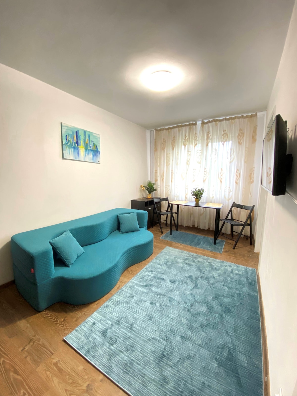 Handa ka na bang mamalagi na parang lokal? Ang komportableng 1bedroom apartment na ito ay ang iyong perpektong home base, 35 minuto lang sa pamamagitan ng kotse o 52 minuto sa pamamagitan ng pampublikong transportasyon papunta sa Unirii Square ng Bucharest. Masiyahan sa kusina na kumpleto ang kagamitan, komportableng sala na may sofa bed (at kutson) 3 minutong lakad lang ang layo ng mga supermarket, gym, restawran, parmasya, at lahat ng kailangan mo. Matatagpuan sa ligtas at tahimik na lugar, ito ang perpektong lugar para makapagpahinga pagkatapos ng isang araw ng pagtuklas. Magiging komportable ka mula sa sandaling dumating ka.