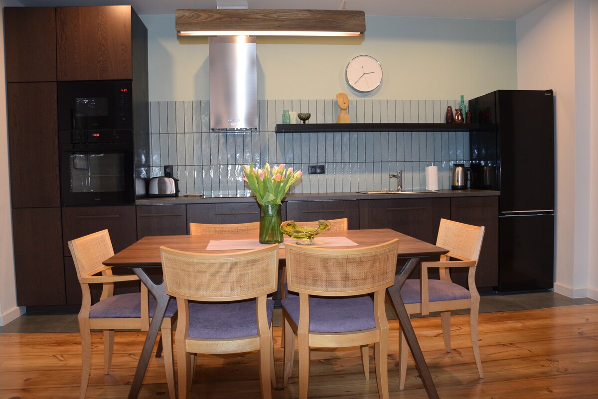 Isang hiwalay na apartment sa isang townhouse, na matatagpuan sa mababang ground floor na may hiwalay na kitchenette at banyo na eksklusibong para sa mga bisita. Ang gusali ay matatagpuan sa isang tahimik na distrito ng lungsod, humigit-kumulang 15 minutong lakad papunta sa Old Town. Malapit sa shopping center at mga grocery store. Ang apartment ay para sa 2 hanggang 4 na tao. Maaaring maglagay ng mga bisikleta. May bayad na paradahan sa kalye mula Lunes hanggang Biyernes, 8:00 AM hanggang 5:00 PM. Ang presyo ng apartment ay depende sa bilang ng mga bisita.