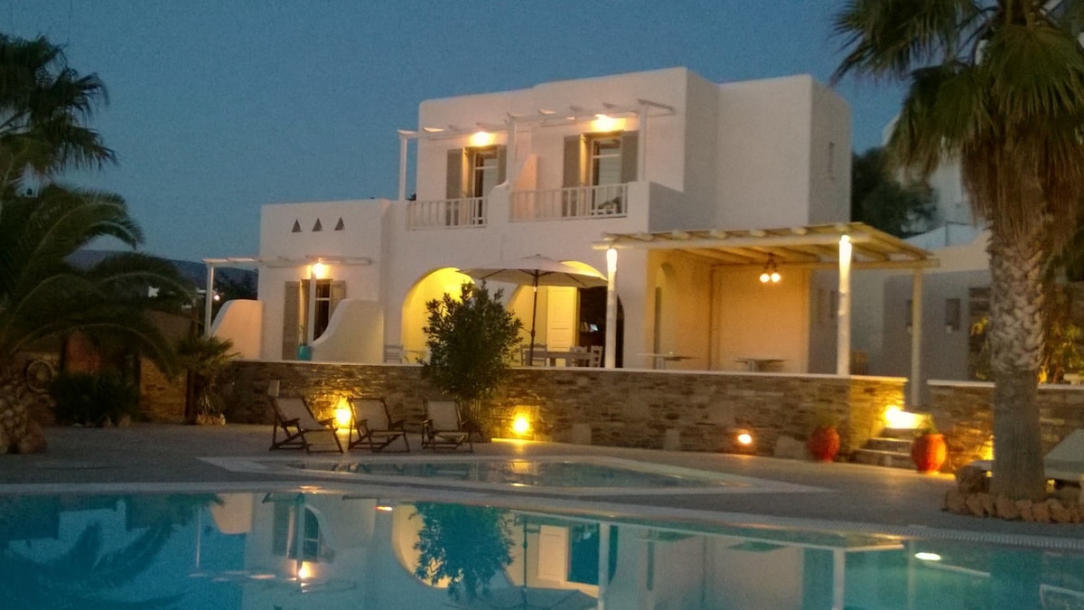 Nag - aalok ang Olga ng cycladic - style elegance, modernong kaginhawaan (A/C, TV, WiFi) sa isang friendly na nakakarelaks na setting: Magandang pool & bar, lahat ng mga kuwartong may ensuite shower, mga pribadong balkonahe na may mga tanawin ng pool, lokal na almusal, mahusay na serbisyo, mahusay na serbisyo, mahusay na lokasyon!