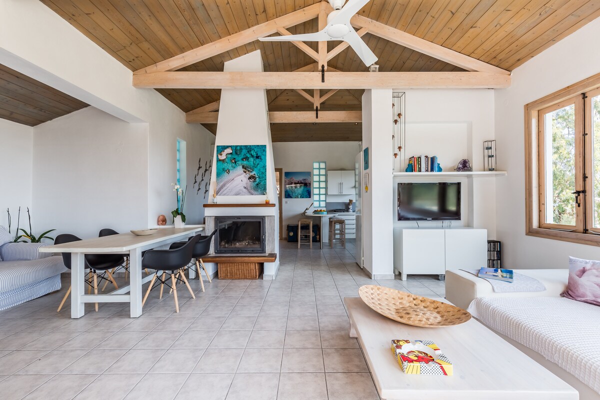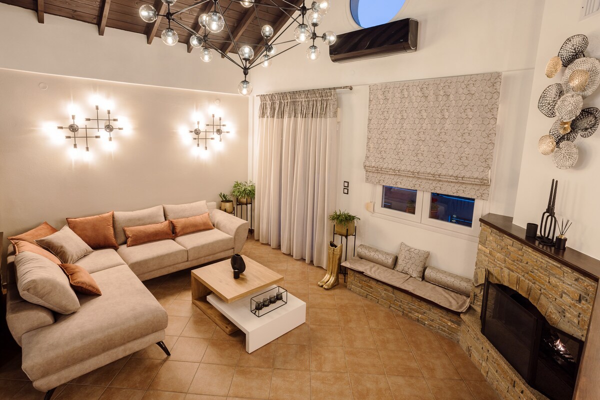 Ang dalawang palapag na luxury villa, na kamakailan lamang ay na-renovate, ay may kumportableng sala, fireplace, magandang tanawin ng Aegean Sea at hardin na may outdoor stone barbeque, pati na rin ang pribadong parking space. Sa 4 na silid-tulugan nito, madali nitong kayang tumanggap ng 8-10 na tao at perpekto ito para sa bakasyon sa taglamig o tag-araw.