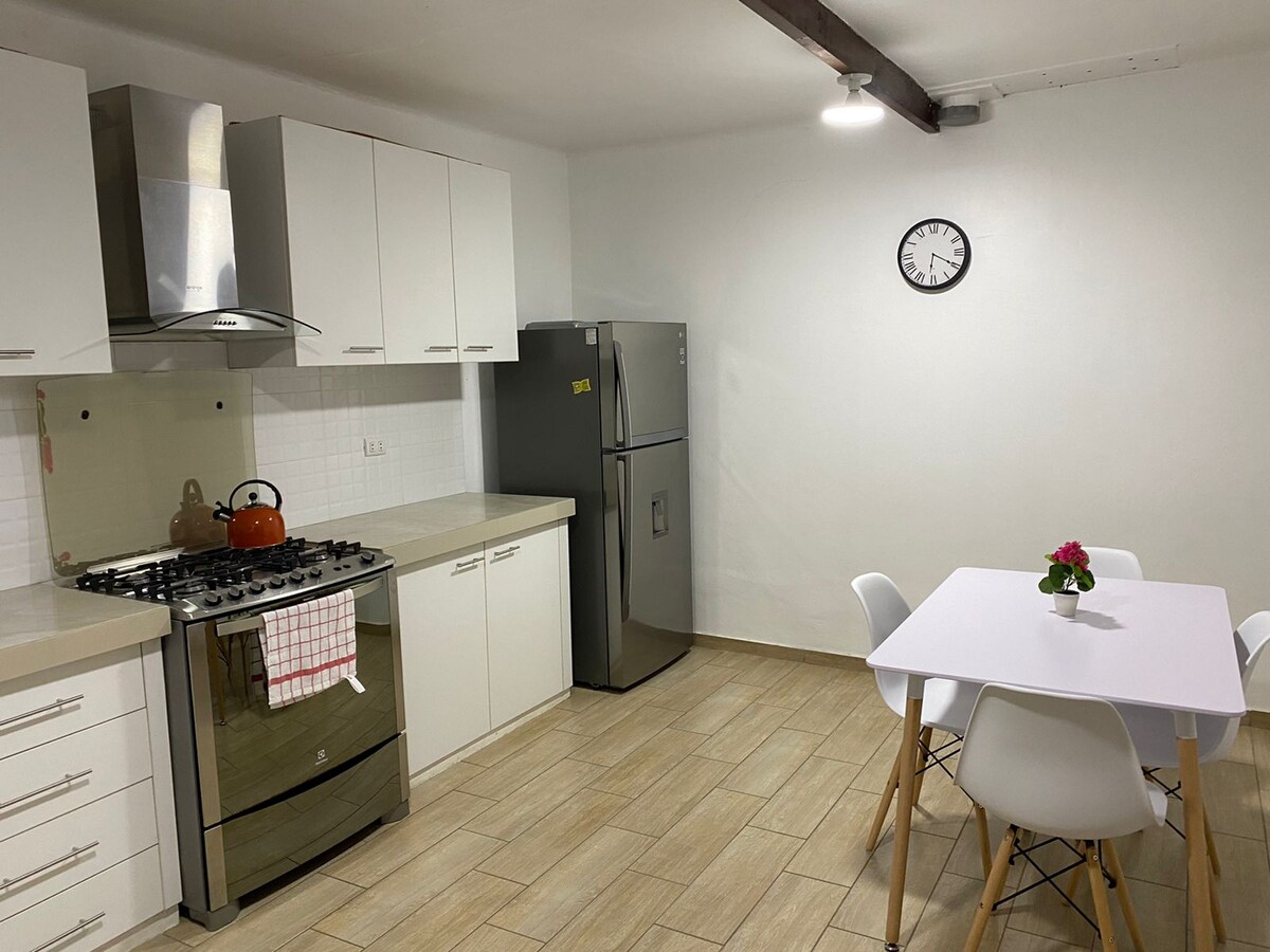Bahay sa probinsya na perpekto para sa mga pamilya at grupo na gustong magsama-sama nang may ganap na privacy. May malaking pribadong hardin ito na perpekto para ligtas na maglaro ang mga bata habang nagpapahinga at nagbabahagi ang mga matatanda. Mag‑enjoy sa pool, mag‑barbecue nang pamilya, at mag‑enjoy sa mga gabi sa paligid ng campfire sa tahimik at komportableng kapaligiran. Nag - aalok ang bahay ng: 🌿 Pribadong hardin 💦 Swimming pool 🔥 FirePit 🍖 Grill at Caja China Kusina 🍽 na may kagamitan 📺 TV 🌐 Wi - Fi. 🚗 Pribadong paradahan