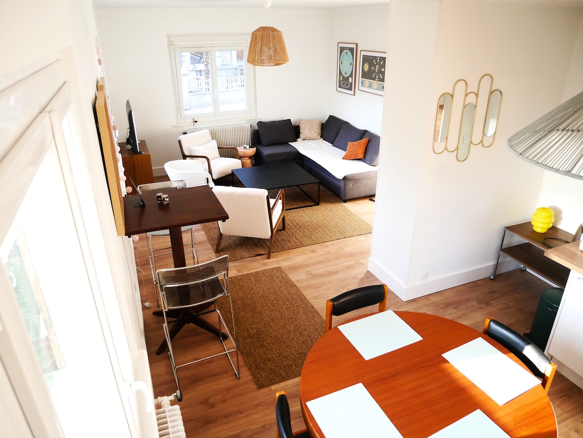 Maison de charme (début XXᵉ), chaleureuse et très calme, au pied du Mont Salève. Grande terrasse ensoleillée, entourée de verdure, et poêle dans le salon pour une ambiance cosy en automne/hiver. 150 m² sur 3 niveaux, jusqu’à 7 couchages. À 15 min de Genève, proche gare d’Annemasse (Léman Express) et à 2 min de l’autoroute vers Genève, Mont-Blanc, Annecy et Lyon. Golf à 3 Km. 2 parkings privés.