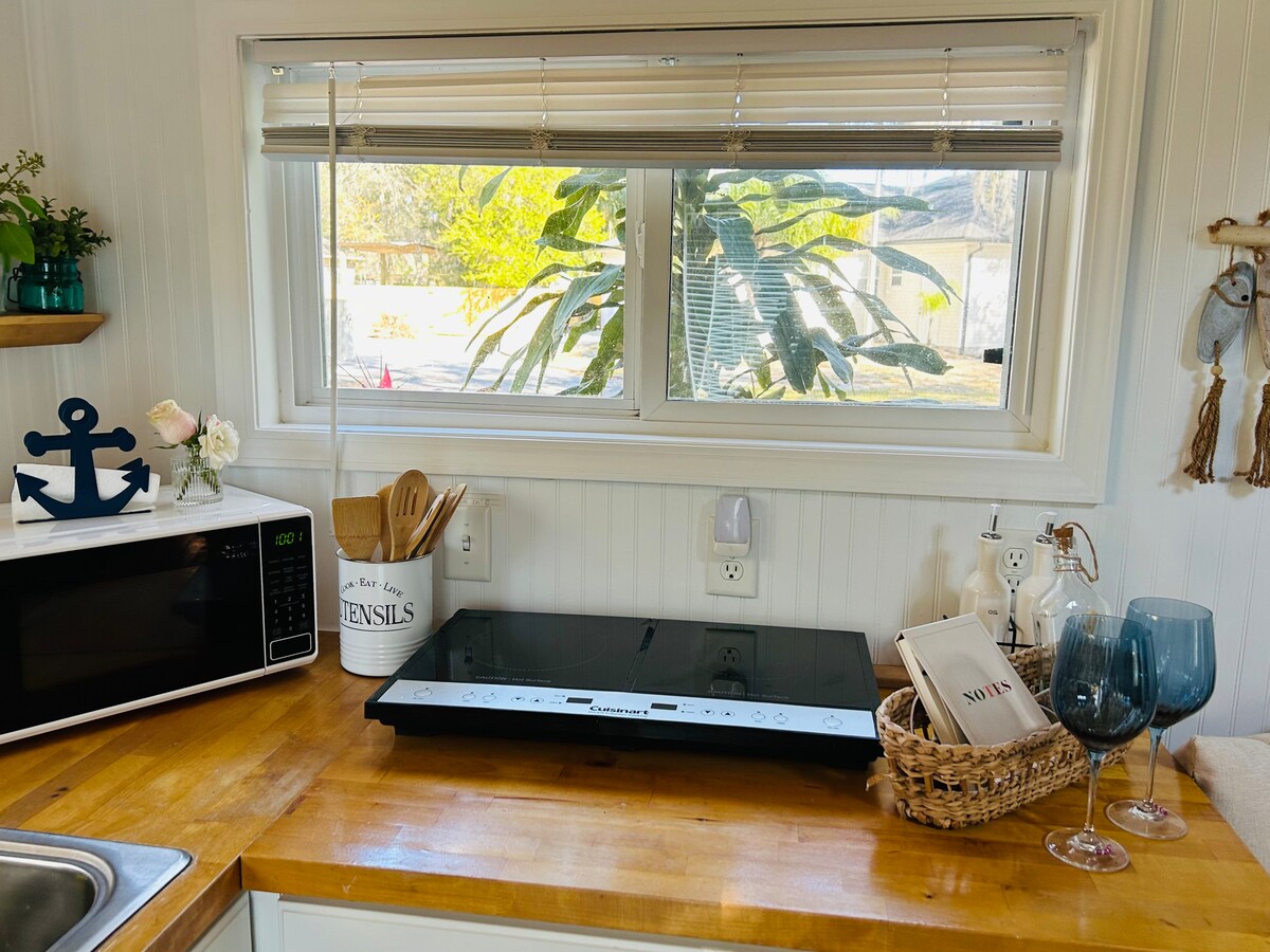 Isang karanasan at natatangi ang Island Cave. Hindi tradisyonal May sliding door ang banyo May window AC ang unit Hindi inirerekomenda para sa mga matatanda o Bisita na may mga limitasyon maliit na espasyo Queen size na higaan Pribadong unit sa likod ng 2 palapag na bahay na itinayo noong 1930s na angkop para sa solo o magkasintahan. (Hindi inirerekomenda para sa pangmatagalang Walang kasamang bata o sanggol 5 pang unit sa property Nasa sentro, 5 milya ang layo sa Cocoa Beach, 1.5 milya ang layo sa Cocoa Village, at malapit sa mga kainan at tindahan Malapit sa mga pangunahing kalsada na may posibilidad ng ingay