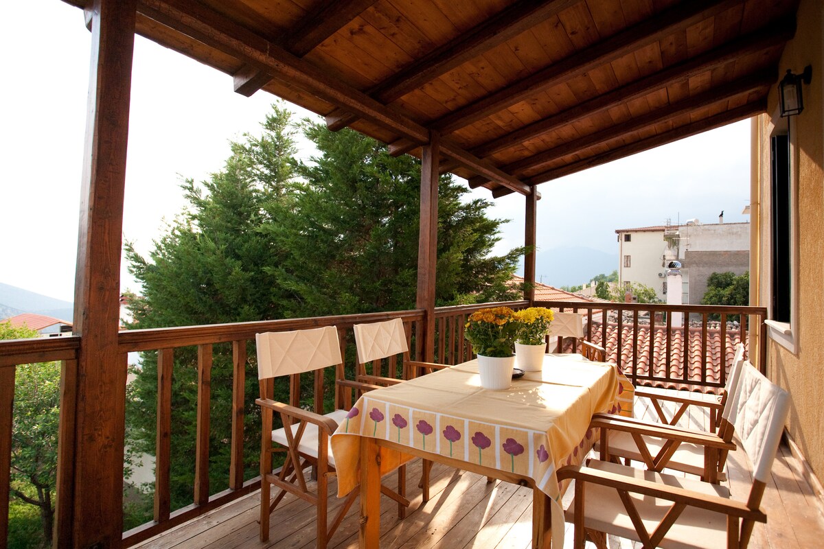 Ito ay isang maginhawa, maluwag, tahimik, pampamilyang apartment na angkop para sa mga mag - asawa, grupo ng mga kaibigan o pamilya na naghahanap ng maikli o pangmatagalang tirahan. Itinayo ito sa isang perpektong lokasyon kaya nag - aalok ito sa aming mga bisita ng mga nakakarelaks na sandali habang nakatingin sa abot - tanaw ng Delphi! Matatagpuan ito sa isang tahimik na kapitbahayan na 200 metro lamang ang layo mula sa sentro ng Delphi. Bilang pampamilyang negosyo, hangad namin ang pag - aalok sa aming mga bisita ng hindi malilimutang karanasan ng lokal na hospitalidad. Inaanyayahan ka naming mag - enjoy sa pamamagitan ng pagpili sa aming apartment!