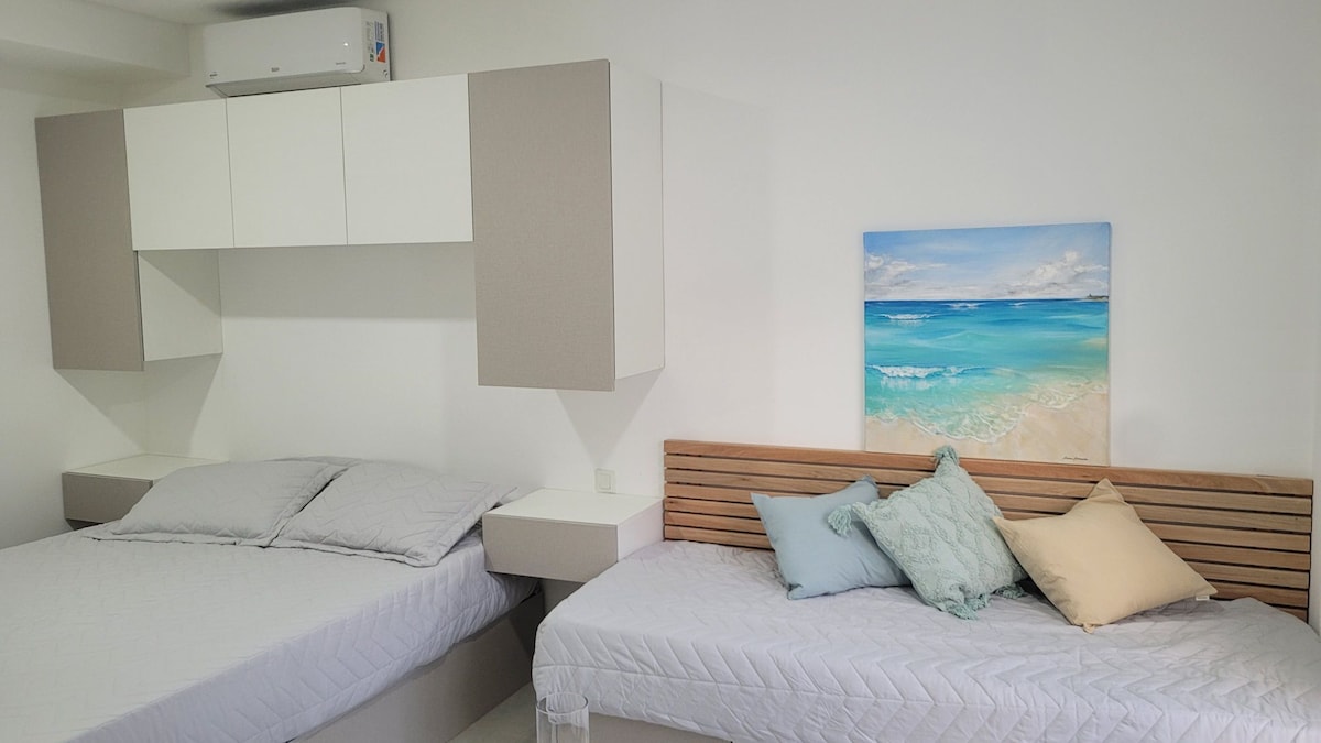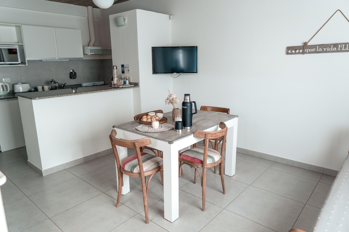 Magrelaks kasama ang buong pamilya sa tahimik na tuluyang ito. Iniimbitahan ka naming mag‑enjoy sa komportable at nakakarelaks na pamamalagi sa Puerto Madryn. Matatagpuan sa tahimik na lugar na 4 na bloke lang ang layo sa dagat, nag‑aalok ang mga ito ng mga moderno, maliwanag, at kumpletong unit na puwedeng tumanggap ng hanggang 4 na tao. May kumpletong kusina, air conditioning, Wi-Fi, cable TV, patyo na may ihawan, at indoor na paradahan ang bawat apartment sa unang palapag. Mainam para sa pagpapahinga, walang hagdan, walang usok, at nasa komportableng kapaligiran.