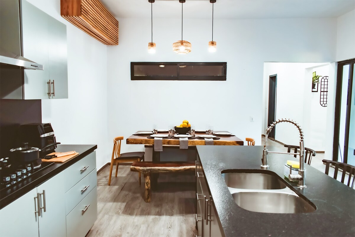 Malapit ang Casa mango sa plaza ng bayan, sa magandang kapitbahayan na may tahimik na gabi. Ito ay perpekto para sa 3 mag - asawa, mga business traveler, mga pamilya, at mga mabalahibong kaibigan. Hiwalay sa iba ang bawat master suite para sa privacy. Isang tirahan na may sariling pribadong bakuran at pool. Malaking pool na pinainit ng maalat na tubig. Mga tanawin ng kagubatan. Mula sa bahay ay 5 milyong lakad papunta sa plaza at isa pang 2 hanggang 3 papunta sa pangunahing beach. Kasama sa golfcart ang bahay. Ang wifi ay Telmex fiber optics wifi.