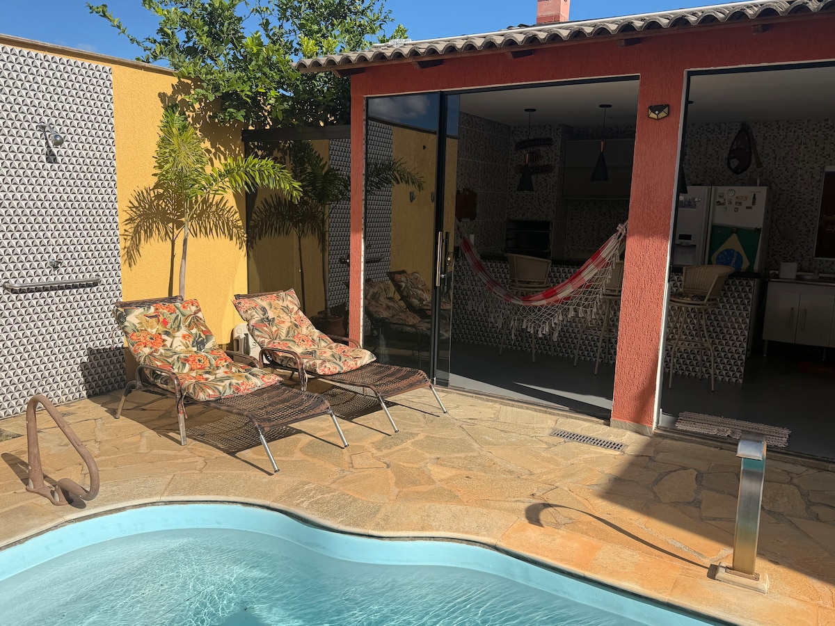 Bahay na may kumpletong leisure pool at barbecue grill. Ang bahay ay 5 km mula sa BR 040 stop upang magpahinga at pagkatapos ay sundin ang isang diskwento na biyahe. Mataas na pader at saradong gate. 40 minuto ang layo ng bahay mula sa paliparan ng Brasilia. Ang bahay ay may humigit - kumulang 60 metro ng panloob na lugar at may kusina, banyo, 4 - burner na kalan at mga pangunahing kagamitan sa kusina, na ginagawang posible upang ihanda ang iyong pagkain . Itinuturing na mga bisita ang mga pagbisita at ang halaga kada tao ay R$ 55 kada gabi.