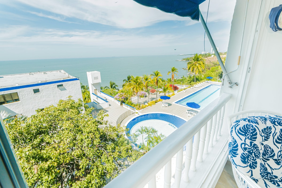 Damhin ang kagandahan ng Santa Marta, ang perlas ng Amerika, mula sa isang resort na sagana sa kalikasan at kaginhawaan. Gumising sa mararangyang apartment sa tabi ng karagatan, at tamasahin ang privacy at katahimikan ng aming pribadong beach. Matatagpuan 10 minuto lang mula sa paliparan, magkakaroon ka ng lahat ng kailangan mo para maging hindi malilimutan ang iyong mga bakasyon: • Pribadong Beach • Gym sa Dalampasigan • Mga tennis, basketball, at beach volleyball court • Dalawang Palanguyan na may Tanawin ng Karagatan • Restawran • Bar • Grill • Minimarket