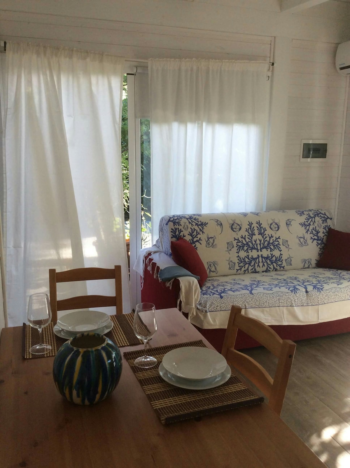 Piccolo bivani all'interno della villa a mt.200 spiaggia composto da una camera matrimoniale con letto extra large , armadio per abiti specchio comodini con cassetto , tvsat, WiFi e climatizzatore freddo/caldo la camera si apre sul proprio giardino. Soggiorno con angolo cucina , divano letto matrimoniale, tavolo in legno 4 posti ,doppiolavello , forno elettrico,frigorifero , climatizzatore ,tvsat ,wifi la stanza si apre sul giardino , tavolo sedie , doccia esterna, bagno con box doccia