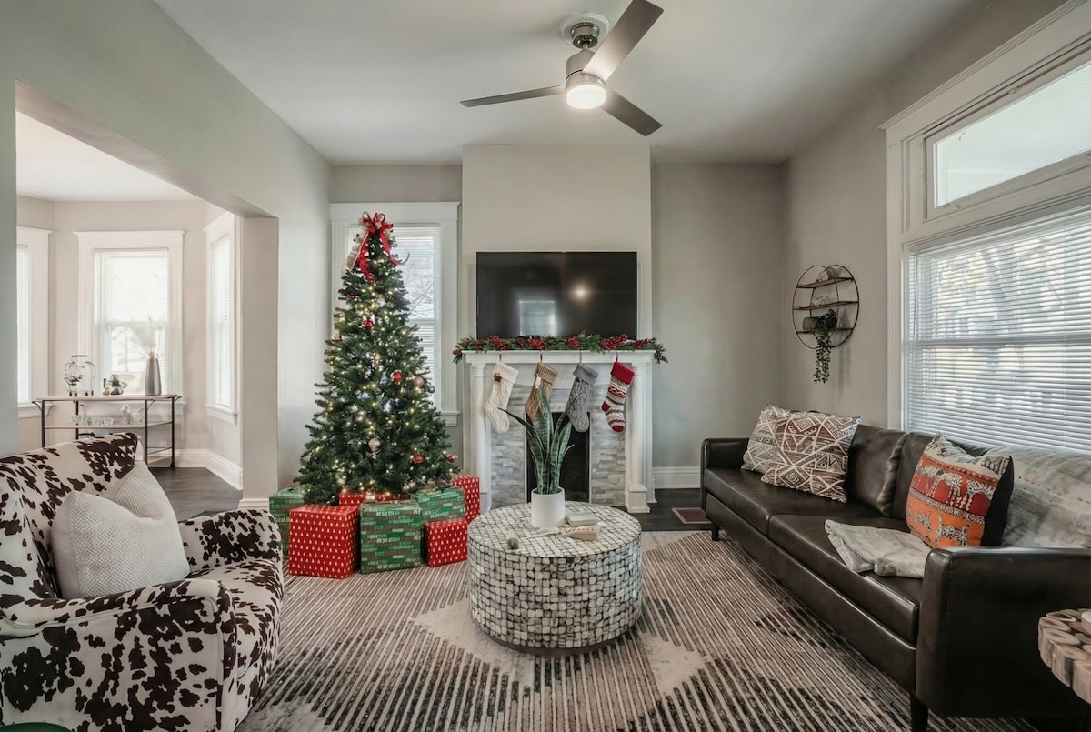 • Bumalik sa nakaraan gamit ang kaaya - ayang 1920s * dalawang pamilya na katalogo ng Sears, na matatagpuan sa isang tahimik at puno ng kalye • Magrelaks nang buong taon sa hot tub, kasama ang in - ground pool (magbubukas sa kalagitnaan ng Abril) • Magluto ng bagyo sa kusinang may kumpletong kagamitan, na nagtatampok ng mga quartz countertop, hindi kinakalawang na asero na kasangkapan, at mga nakatalagang coffee at waffle bar • Manatiling naaaliw sa mga board game, laruan para sa mga bata, at mga dagdag na pagkain ng aming mga waffle at coffee bar