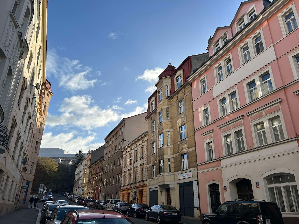 Apartment malapit sa parke at sa sentro ng lungsod na may tanawin ng Prague