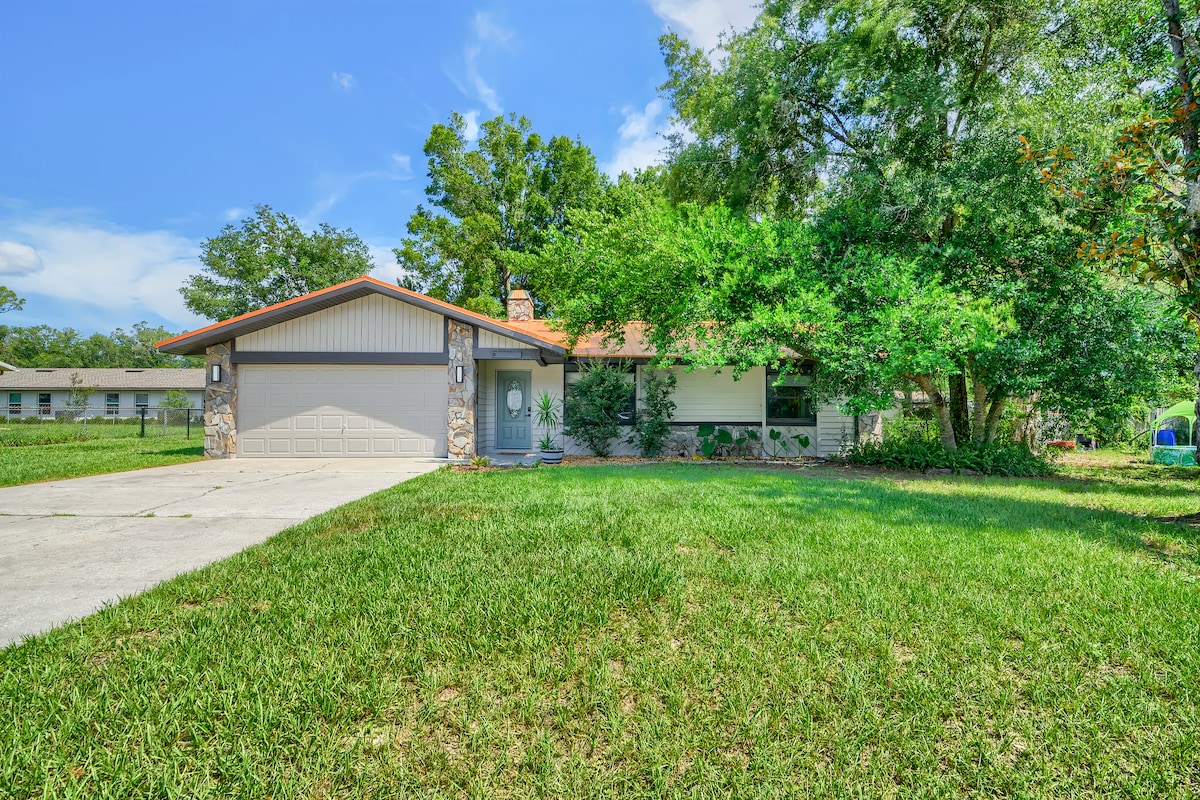 Malapit sa lahat ang iyong pamilya kapag namalagi ka sa tuluyang ito na matatagpuan sa gitna. Sa tapat lang ng Hwy 19 mula sa kings bay, ilang minuto mula sa mga rampa ng bangka, bukal, restawran, at shopping. Kasama sa tuluyan ang 1 King, 1 Queen, at 2 twin bed, kumpletong kusina, labahan sa lugar, maluwang na bakuran na may patyo, gazebo at BBQ grill. Mainam kami para sa mga alagang hayop para sa mga maliliit na alagang hayop pero hindi pinapahintulutan ang mga alagang hayop sa alinman sa mga muwebles. Mapayapang kapaligiran, ligtas na nakahiwalay na kapitbahayan.
