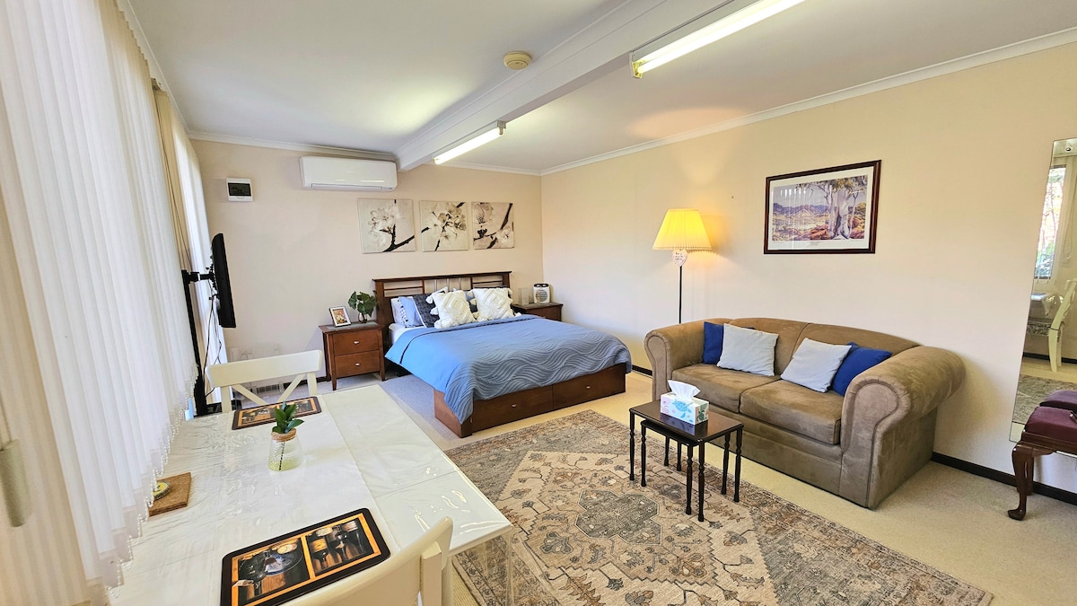 Isang tahimik at kumpletong studio para sa isang bisita ang Garden Retreat sa Valley View. Mag‑enjoy sa pribadong banyo, kitchenette (cooktop, microwave, at kettle), at nakatalagang workspace. Mag-stay nang komportable gamit ang AC/heating, Wi-Fi, at TV. Lumabas sa patyo na may access sa hardin. May nakatalagang paradahan. Humigit‑kumulang 2 minuto ang layo ng bus stop at aabutin nang humigit‑kumulang 30 minuto ang biyahe papunta sa lungsod ng Adelaide.