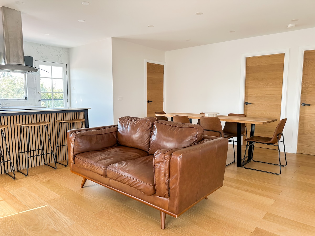 Isang light - filled, maingat na dinisenyo na dalawang silid — tulugan na guest suite — ang iyong mapayapang bakasyunan higit sa lahat. Matatagpuan sa pinakamataas na antas ng pribadong tuluyan, nag - aalok ang maluwang at self - contained na suite na ito ng perpektong balanse ng kaginhawaan, kalmado, at kaginhawaan. Naliligo sa natural na liwanag, ang tuluyan ay may mga earthy tone at minimalist touch para matulungan kang makapagpahinga kaagad. Ang Solenia ay perpekto para sa mga naghahanap ng tahimik na bakasyunan, isang content creation haven, o simpleng pamamalagi na nakakaramdam ng kalmado, malinis, at pinapangasiwaan.