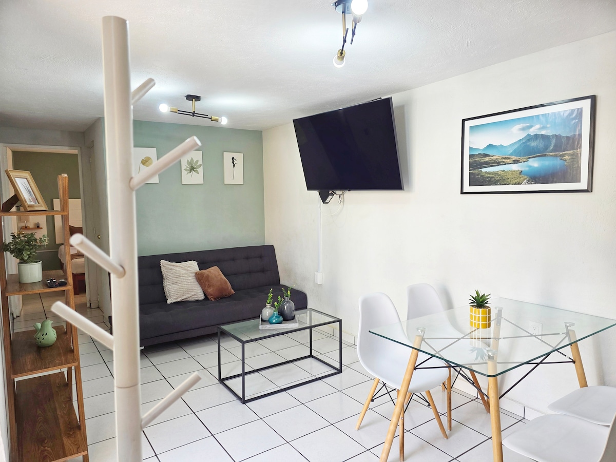 Departamento funcional y bien ubicado, ideal para dos personas. Cuenta con recámara, baño completo, cocina equipada, sala cómoda, Wi-Fi y balcón privado. Espacio tranquilo y práctico, con fácil acceso a comercios y transporte. Ideal para estancias cortas o largas.