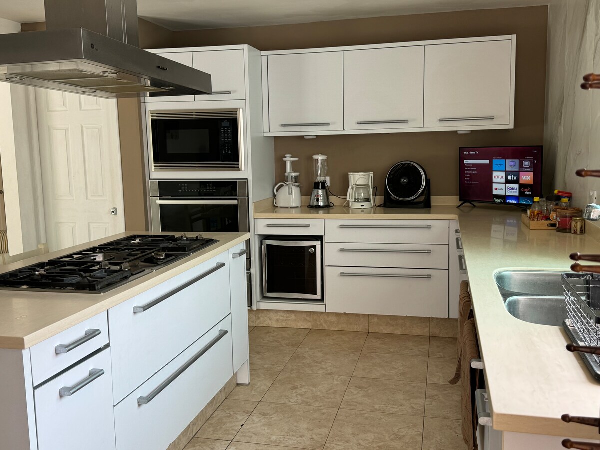 Magandang pamamalagi, napaka - komportable, kasama ang lahat ng rekisito sa paglilinis at pag - sanitize. Magandang lokasyon . Mainam para sa mga pamilya . Kumpletuhin ng bahay ang tatlong silid - tulugan . Dalawang kumpletong banyo, kumpletong kusina. KING SIZE BED master bedroom NA MAY ENSUITE BATH. VANITY, CLOSET, AT NIGHTSTAND RECAMARA #2 dalawang double bed, aparador, aparador, mesa sa tabi ng kama. RECAMARA #3 dalawang double bed, aparador, mesa sa tabi ng higaan.