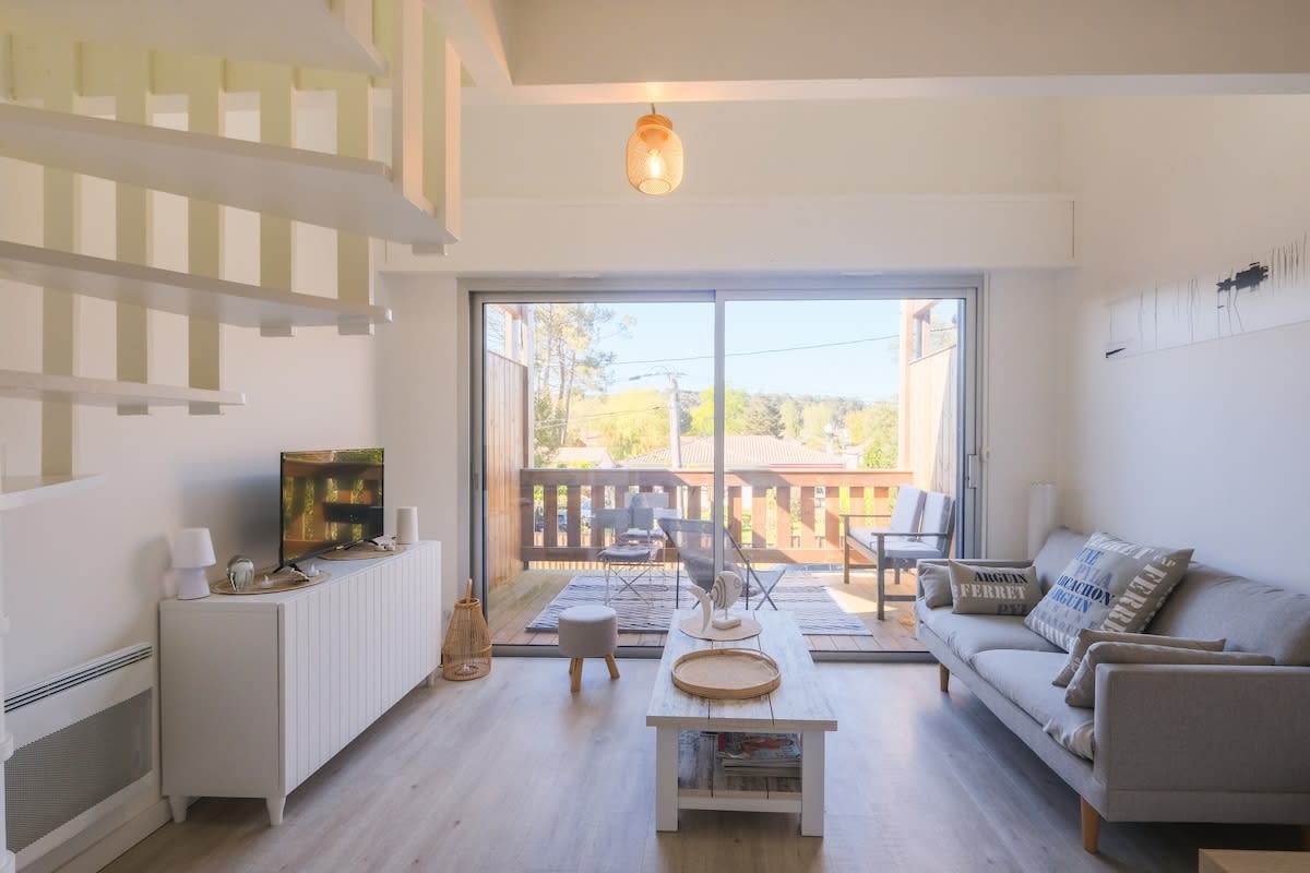 Bagong T2 ng 55 sqm, independiyente na may terrace at pribadong paradahan sa isang napaka - tahimik na lugar. Matatagpuan 400 m mula sa Balnéo SPA Domaine du Ferret, 800 m mula sa Bassin d 'Arcachon. Tamang - tama para sa isang magkarelasyon na may mga bata: 1 silid - tulugan at isang double sofa bed sa sala. Kusinang kumpleto sa kagamitan, WiFi, nababaligtad na air conditioning, TV. Malapit sa lahat ng amenidad: Super U, istasyon ng serbisyo, daanan ng bisikleta.