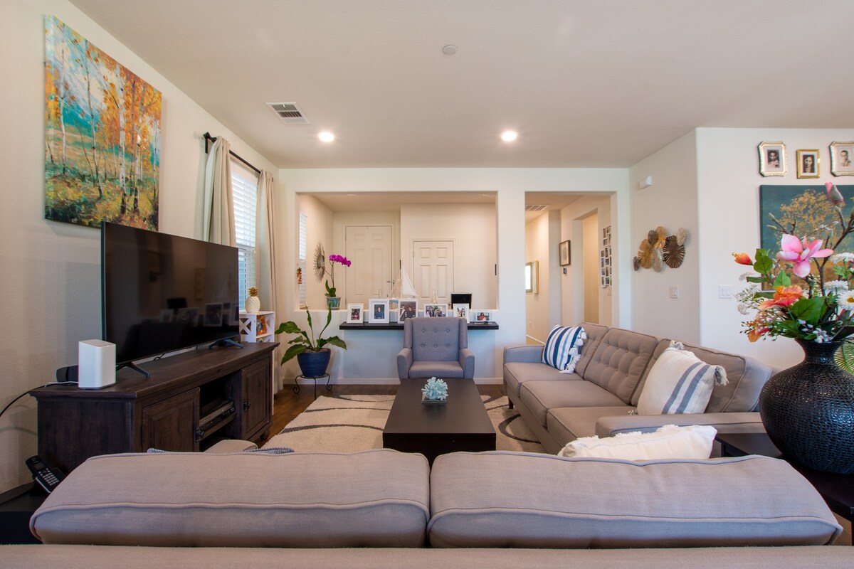 Mag - empake nang mas magaan at gumising sa isang tahimik na kapitbahayan na ilang minuto mula sa pinakamagagandang atraksyon sa Sacramento! Ang mamahalin mo - Mga Review ng aming Magsalita Para sa Mga Sarili! - Bagong Itinayo, Upscale, at Buksan ang Konsepto! - Kumpletong naka - load na kusina! - Mga laro para sa buong pamilya! -2000 Sq Ft! (Tinatayang 185 metro kuwadrado) - Kuwartong pang - laundry! -5 Min. Mula sa Pamimili, Stadium ng Rivercat, at Kainan sa Sacramento River! - EV Charger - Fenced Back Yard! - Mainam para sa mga aso!