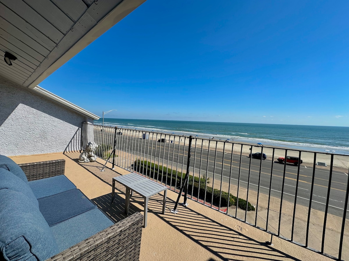 Ang bagong ayos na condo sa harap ng Beach na ito ay ang perpektong lugar na matutuluyan ng iyong mga kaibigan at pamilya sa Galveston. Ang walang harang na tanawin ng karagatan mula sa iyong pribadong balkonahe sa itaas na palapag ay kapansin - pansin. Moderno, maluwag at puno ng natural na liwanag ang loob. Ang intensyonal na disenyo, mga bagong pagsasaayos at mga simpleng pop ng kulay ay nagpapakalma, malinis at kaaya - aya ang lugar na ito. Hindi mo matatalo ang lokasyong ito tungkol sa kalapitan ng mga atraksyon at isang lakad lang sa kabila ng kalye papunta sa beach!