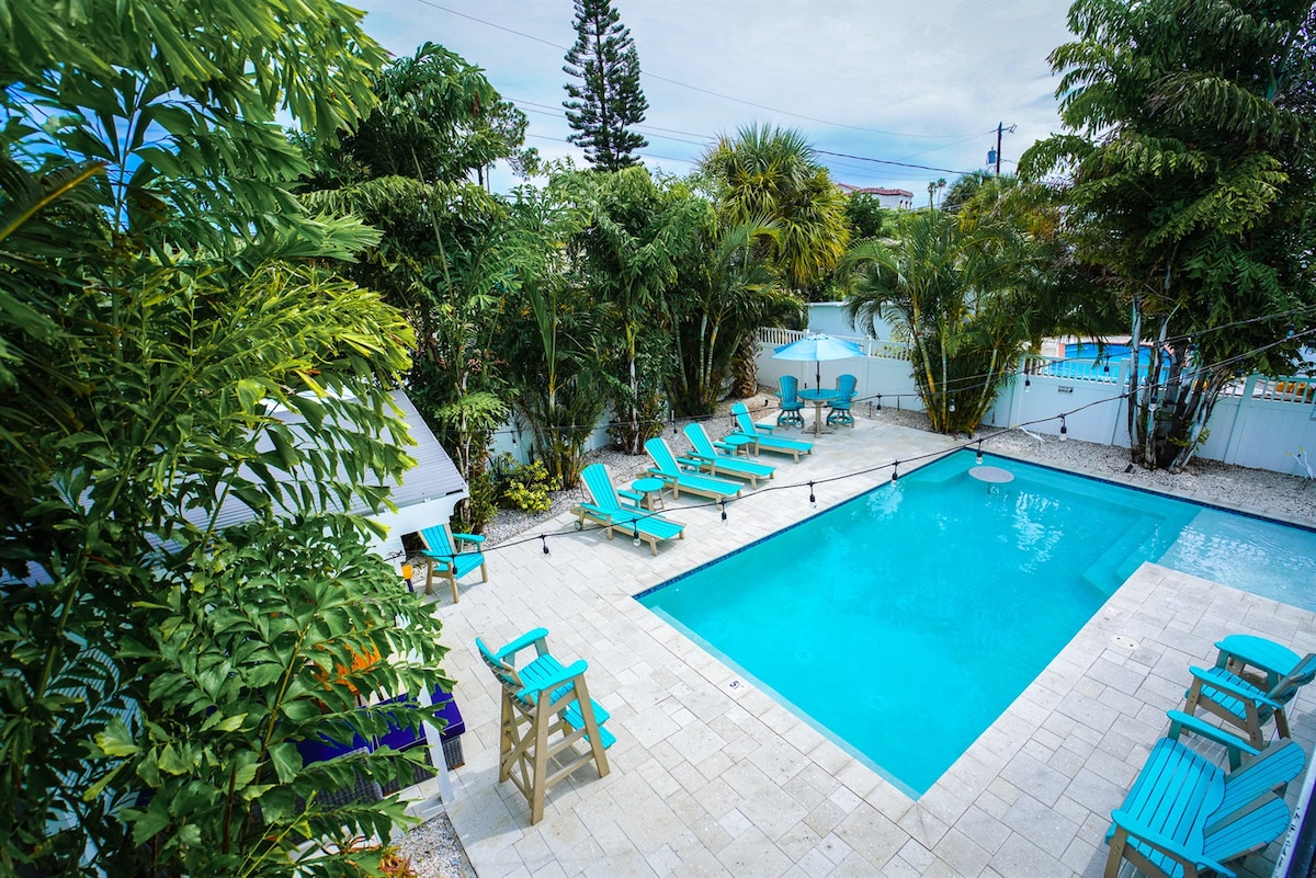 Welcome sa Seminole Shores Villa, ang 2,400‑square‑foot na tropical spa oasis mo! Ang property na ito ay isang 4BR na tuluyan na may maraming amenidad para gawing talagang hindi malilimutan ang iyong pamamalagi. Malapit man ang mga beach (<5 min), baka hindi mo nais umalis sa heated na salt-water pool na nasa malaking bakuran na parang spa, na nag-aalok ng privacy at maraming puwedeng gawin. Ganap na na-renovate ang bahay na ito noong 2023 para magkaroon ng tropikal na disenyo. Inuuna namin ang isang malinis at ligtas na kapaligiran bilang bahagi ng iyong karanasan.