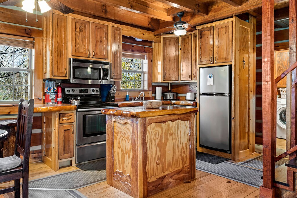 Naghahanap ka ba ng ibang uri ng karanasan sa bakasyon bukod sa beach at mga bundok? Bakit hindi bakasyon (o bakasyon sa katapusan ng linggo) sa ilog?!? Ipinagmamalaki ng Covered Bridge Properties ang 1 bedroom cabin na ito. Mamahinga sa beranda, umidlip sa daybed swing; habang tinatahak ng mga bata ang daan papunta sa ilog para mangisda! Dalhin ang iyong poste! Mayroong ilang mga lokal na restawran na may 15 minutong biyahe mula sa cabin, Top Hat BBQ at El Molino Mexican Restaurant. 15 minuto lamang ang layo namin mula sa 165.