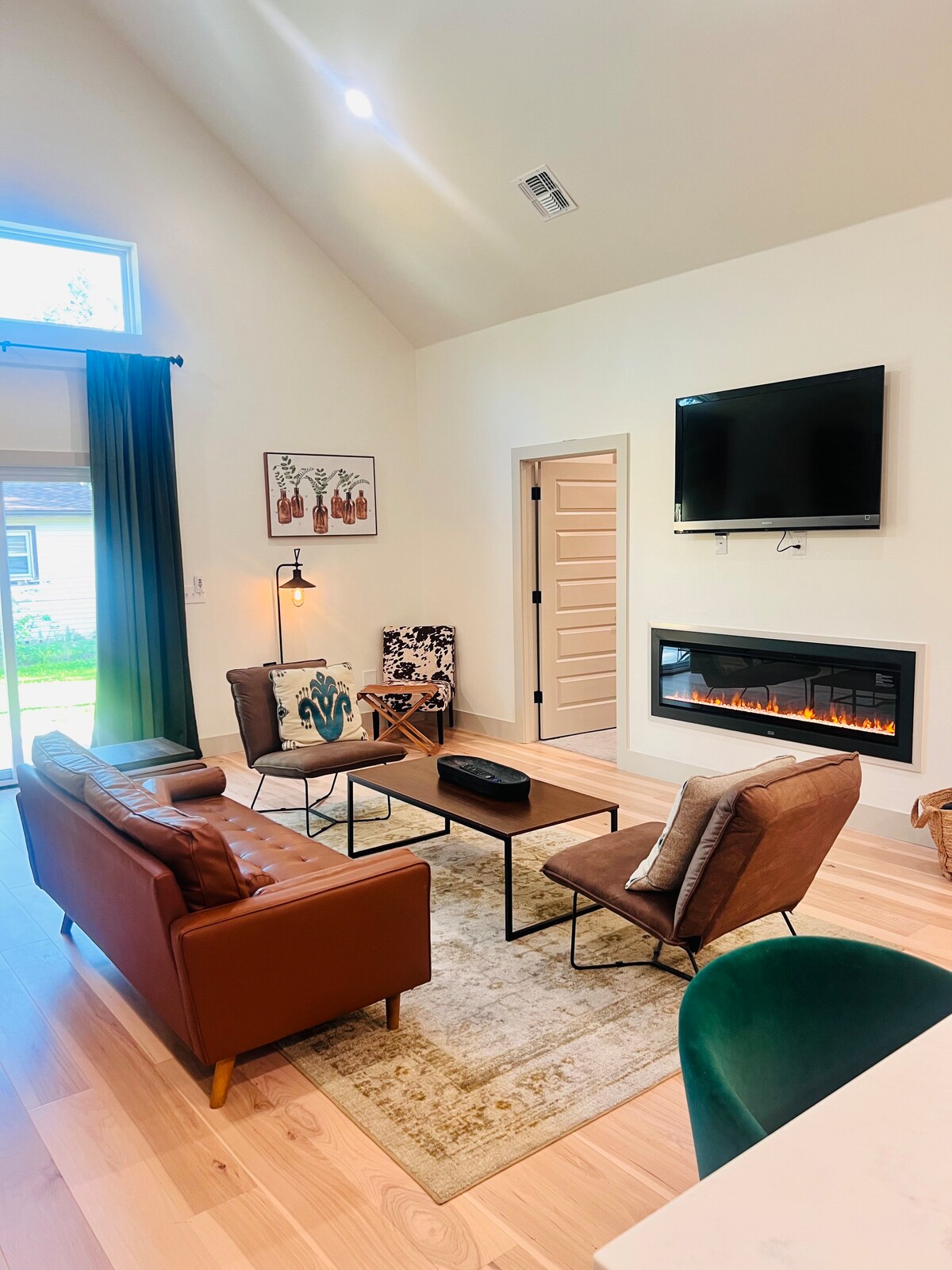 THIS IS A DUPLEX. Very quiet 3 bed 2 full bath offers unique private front courtyard, and back outdoor living room with TV & grill. Modern interior filled with art. Open living/dining/kitchen. Primary bedroom suite features KING size bed, 55” Smart TV, and spacious bathroom with walk-in shower. Secondary bedroom features KING size bed and TV. Perfect location minutes to restaurants and shopping. Out of town guests only. Easy access to all major interstates. Pets allowed ($40 per stay. )