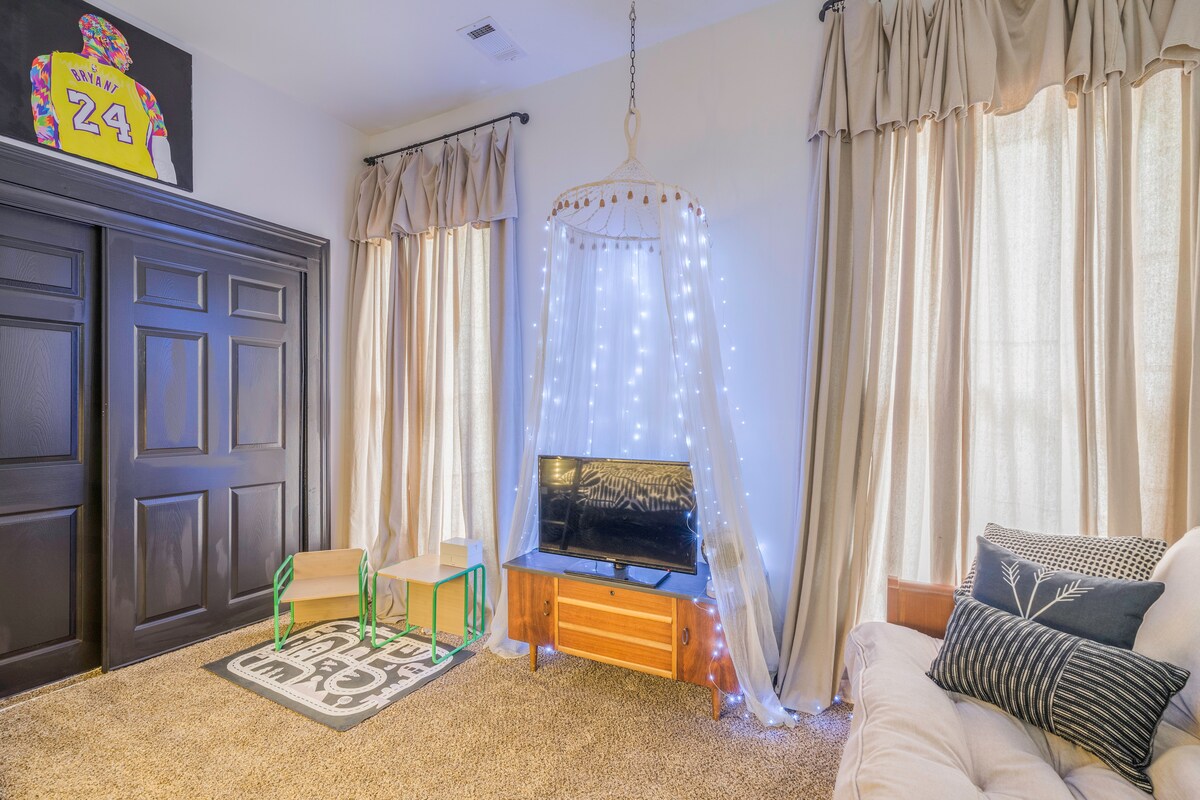 Ang Heavenly Hideaway ay isang kaakit - akit na 2 bed 1 bath home na matatagpuan sa gitna ng mayabong na halaman, na napapalibutan ng tahimik na tanawin ng halaman. Ang nakamamanghang retreat na ito ay ganap na matatagpuan sa isang walkable na kapitbahayan, na nagpapahintulot sa iyo na i - explore ang mga lokal na parke at kainan nang madali. Bukod pa rito, nag - aalok ito ng dagdag na kaginhawaan ng pagiging isang bato lamang ang layo mula sa iba 't ibang mga kaakit - akit na lokal na atraksyon, na tinitiyak na ang iyong pamamalagi ay parehong mapayapa at puno ng mga kapana - panabik na karanasan. Masisiyahan ang mga mabalahibong kaibigan sa bakod sa likod - bahay.