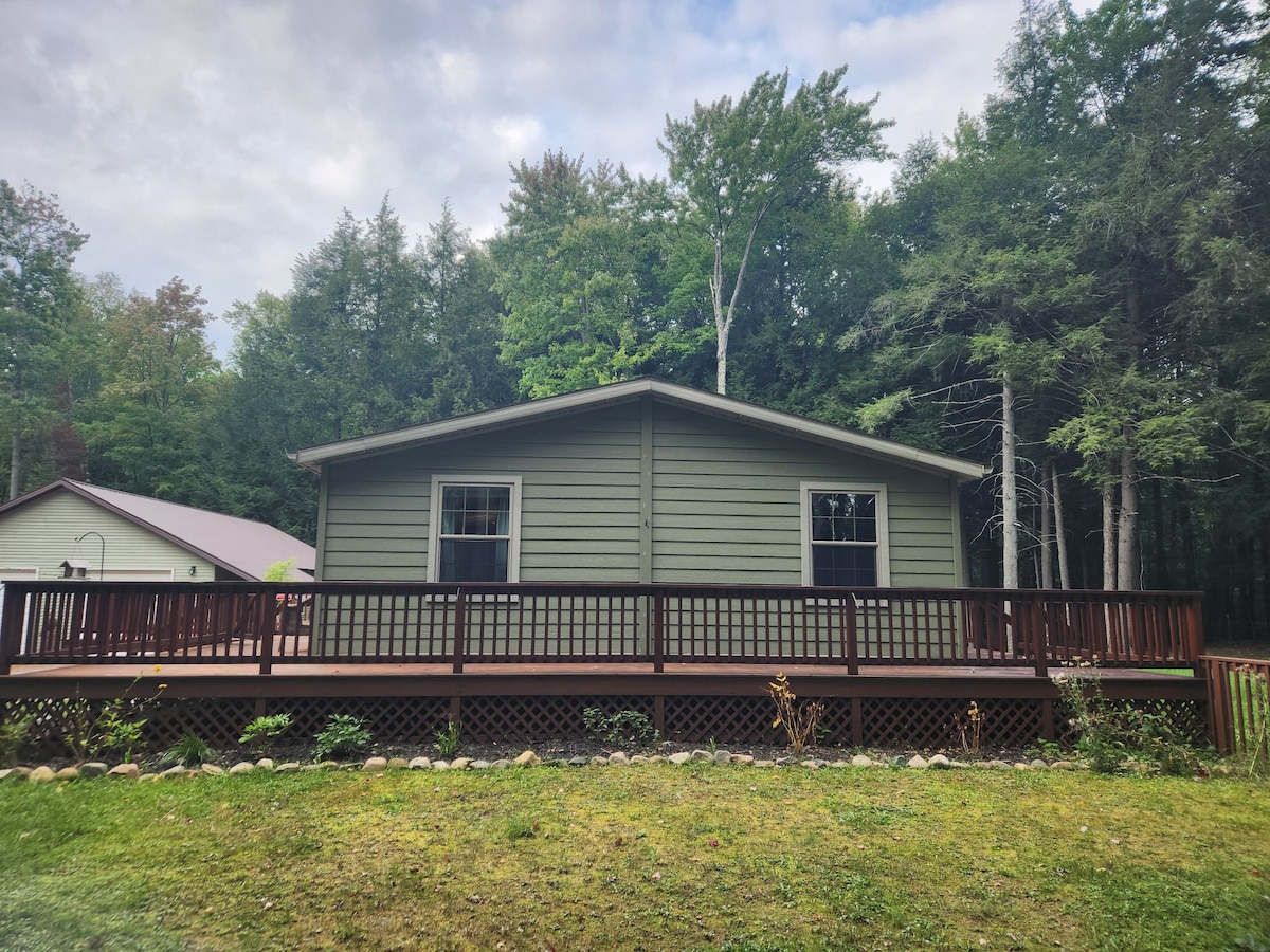 Pinakamagaganda sa lahat ng panig ng mundo! Masiyahan sa privacy na gawa sa kahoy (4 na ektarya) pero malapit din sa paglalakad/pagbibisikleta papunta sa lahat ng kaginhawaan na iniaalok ng lungsod ng Eagle River! 1.6 milya ang layo mula sa dowtown Eagle River! Access sa mga trail ng ATV at snowmobile. Libreng paradahan ng trailer ng atv at snowmobile. Malapit sa bangka na dumarating sa kadena ng Eagle River. Mainam para sa aso, na may bakod na bakuran! Antenna TV - mga lokal na istasyon 1 - Queen bed 2 - Mga twin bed 1 - Queen sized futon