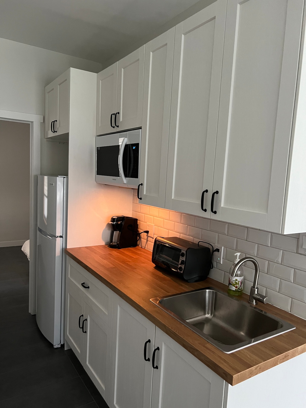 Apartment na may lahat ng amenidad, kusina, buong banyo, sa gitna ng Magog, malapit sa mga bar, restawran at tindahan, ilang minuto mula sa Mont Orford Park, ski resort, bike (fat bike), hiking at mga aktibidad sa labas.
