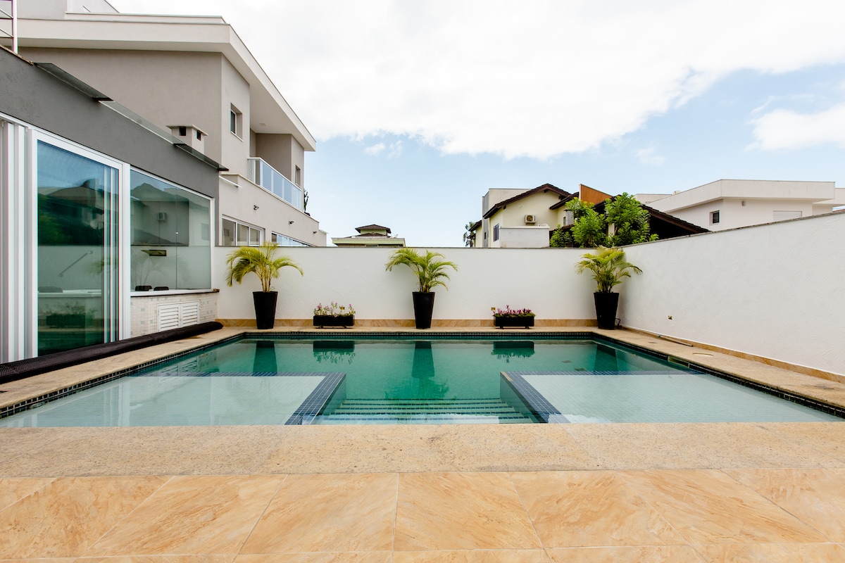 Ang eleganteng at komportableng tuluyan na ito ay perpekto para sa paglalakbay ng pamilya o mga grupo. Equipada com wifi, TV na may streaming, Amazon video, Claro TV+. Tunog sa gourmet area, charcoal barbecue, outdoor ecological fireplace, heated pool, perpekto para sa pagpapahinga pagkatapos ng beach. Malalaki at magagandang tuluyan.