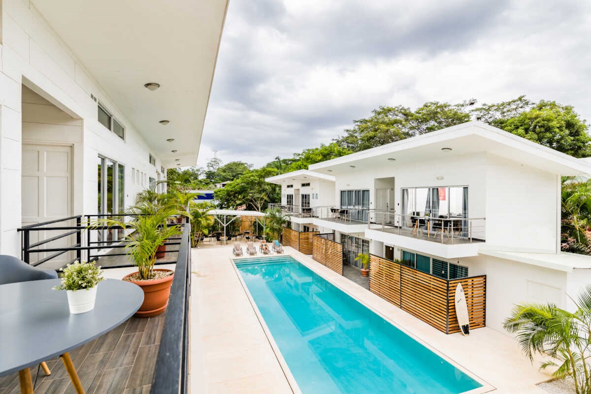 Isawsaw ang iyong sarili sa marangyang kaginhawaan ng aming maingat na pinalamutian na kuwarto, kung saan pinili ang bawat detalye para dalhin ka sa isang mundo ng kagandahan at relaxation. Ang aming Surf House ay isang oasis ng katahimikan kung saan maaari kang makatakas sa araw - araw na pagmamadali at pagmamadali at sa nakapaligid na kalikasan. Bilang karagdagan sa iyong maginhawang kuwarto, maaari mong tangkilikin ang aming mapang - akit na pool, kung saan maaari kang magbabad sa kristal na malinaw na tubig habang nalulugod ang banayad na bulung - bulungan ng mga puno ng palma.