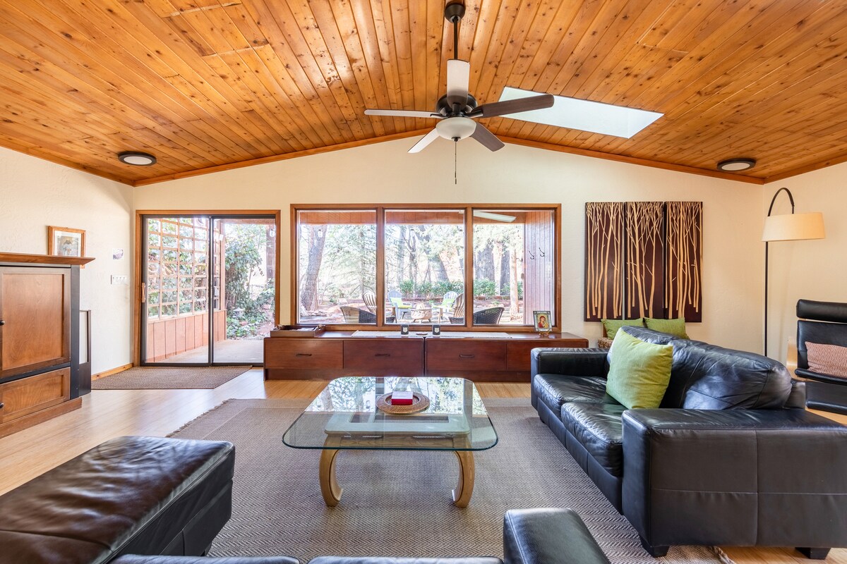 Magandang guesthouse sa kanayunan, tahimik na kapitbahayan na napapalibutan ng Pambansang Kagubatan, dark sky stargazing, privacy, vortex energy, at maraming pagbisita mula sa lokal na wildlife! Matatagpuan sa pagitan ng mga dalisdis ng Horse Mesa at ng mga pulang bato ng Lee Mountain. Ang mga pribadong hiking trail mula sa iyong pinto ay bahagi ng Coconino National Forest na sumasaklaw sa ilalim ng 300 milya na may walang katapusang mga opsyon sa hiking! Ang komportableng bahay na 350 sq. ft. ay may lahat ng komportableng amenidad. Smart TV na may Directv.