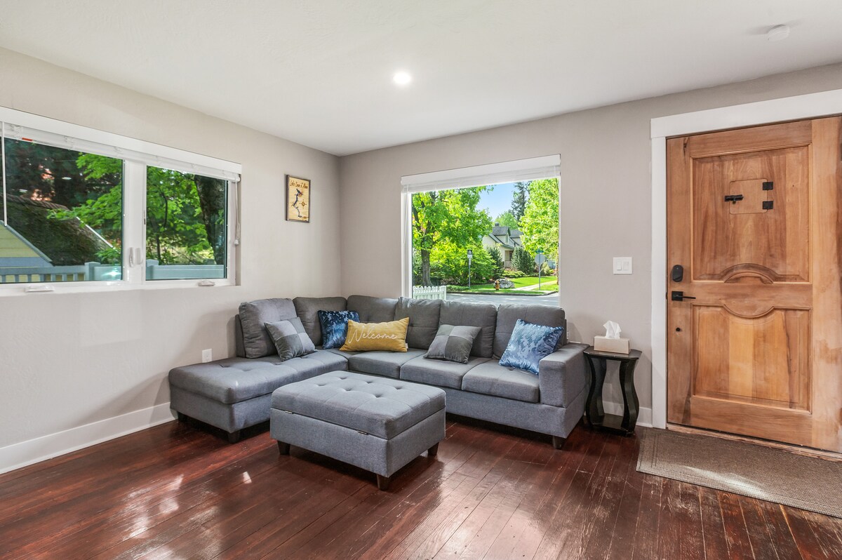 Itigil ang paghahanap at gawin ang tamang pagpipilian sa pamamagitan ng pamamalagi sa klasikong Coeur d 'Alene remodeled bungalow home na ito, na may bawat amenidad na kakailanganin mo para sa perpektong bakasyon. Na - renovate at inilunsad noong 2023 ng FunToStayCDA, na pag - aari at pinapangasiwaan ng isang itinatag na lokal na superhost (mag - click sa aking litrato sa profile para makita ang iba pang magagandang listing.) Hanggang 8 ang kayang tulugan ng kaakit‑akit na tuluyan na ito dahil sa dalawang full bed sa bukas na kuwarto sa itaas, queen sofa bed at modular couch sa sala, at kuwartong may queen bed